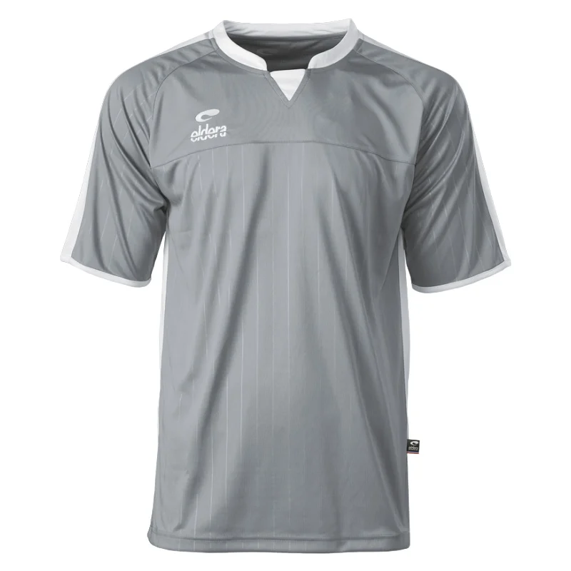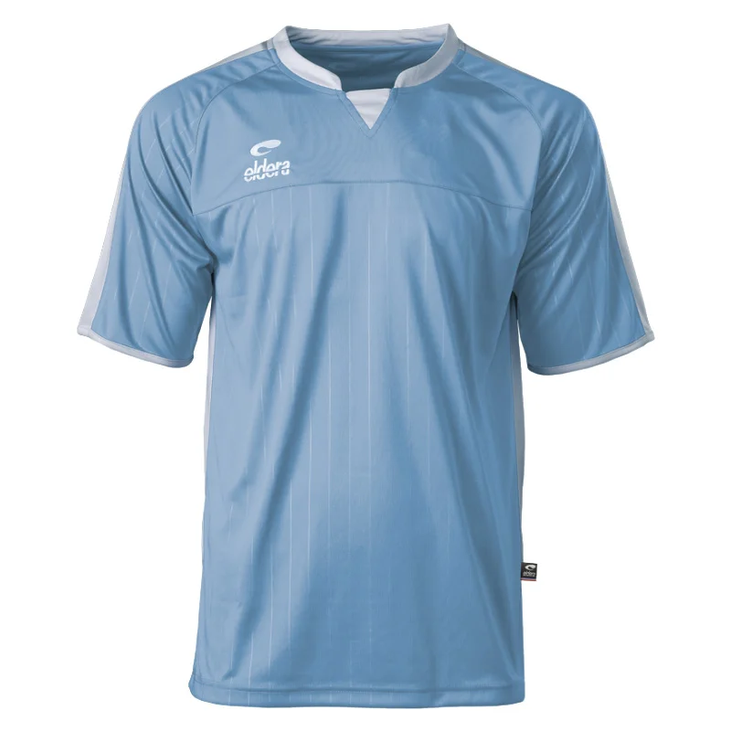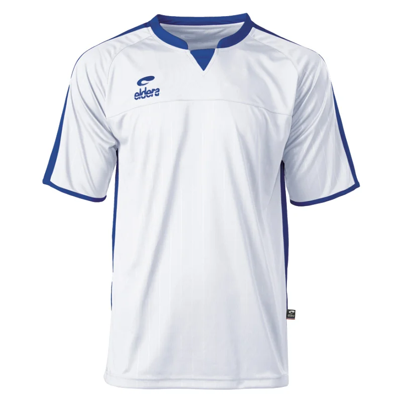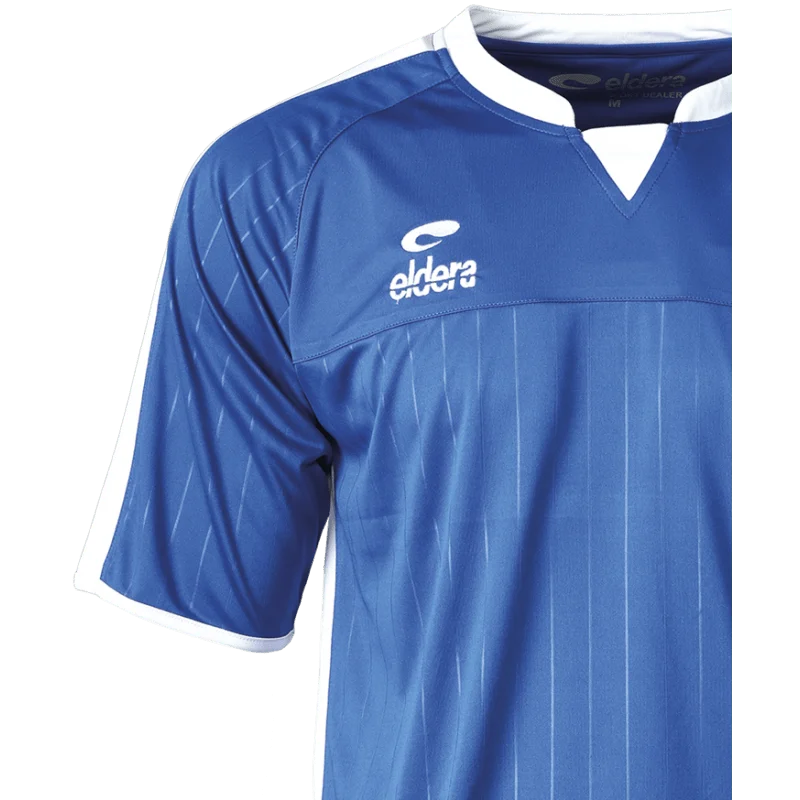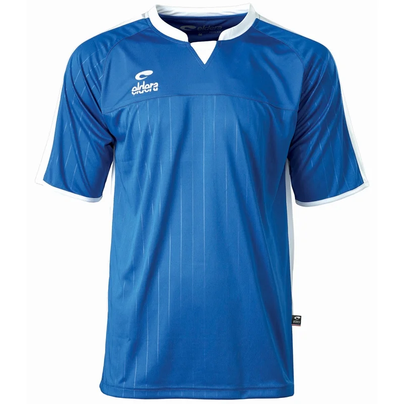 Polyester interlock, face inférieure et manches rayées par embossage, inserts et col coloris contrastés, col avec bande de propreté, logos brodés.