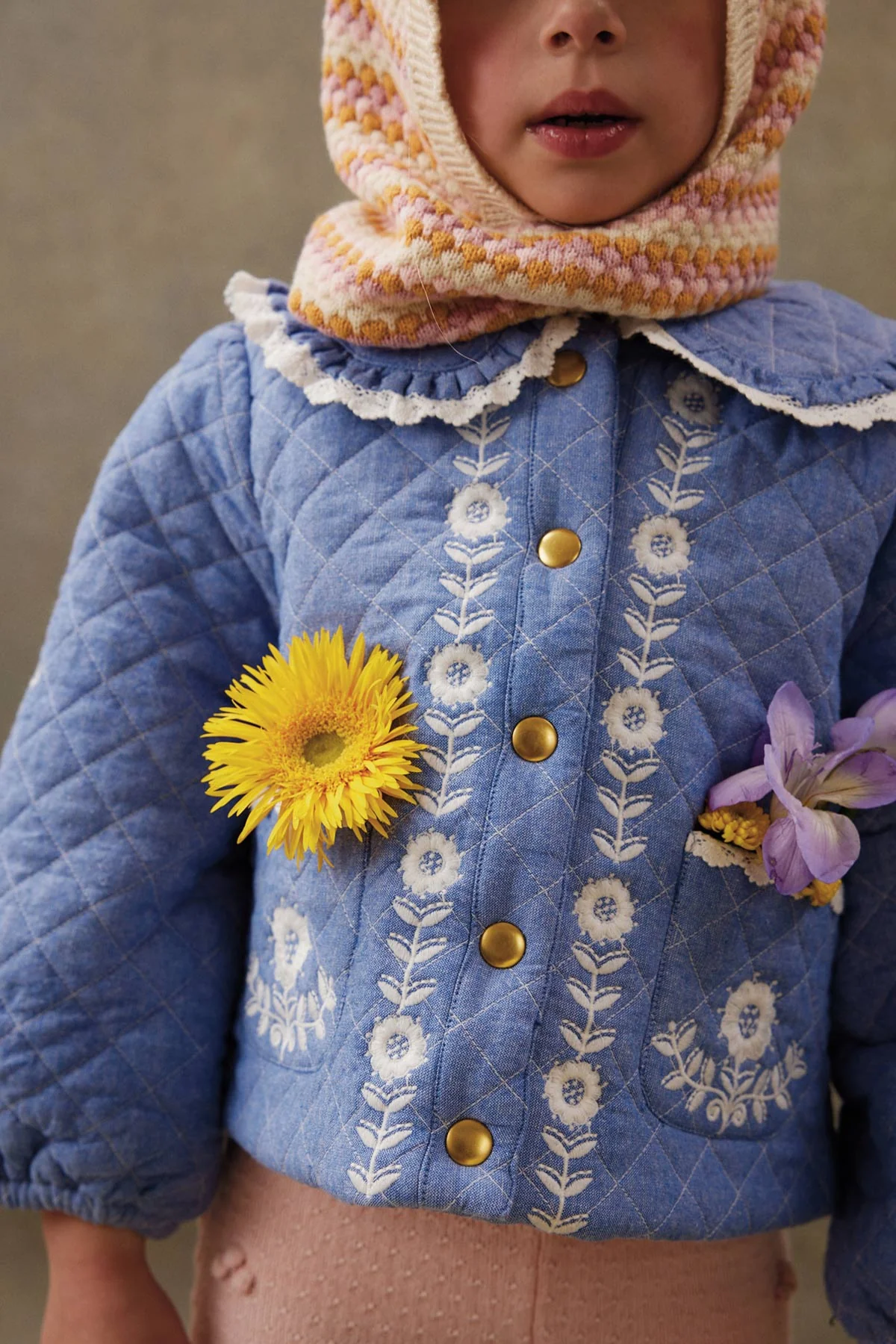 - Patte de boutonnage pressionnée devant de haut en bas avec détails brodés.