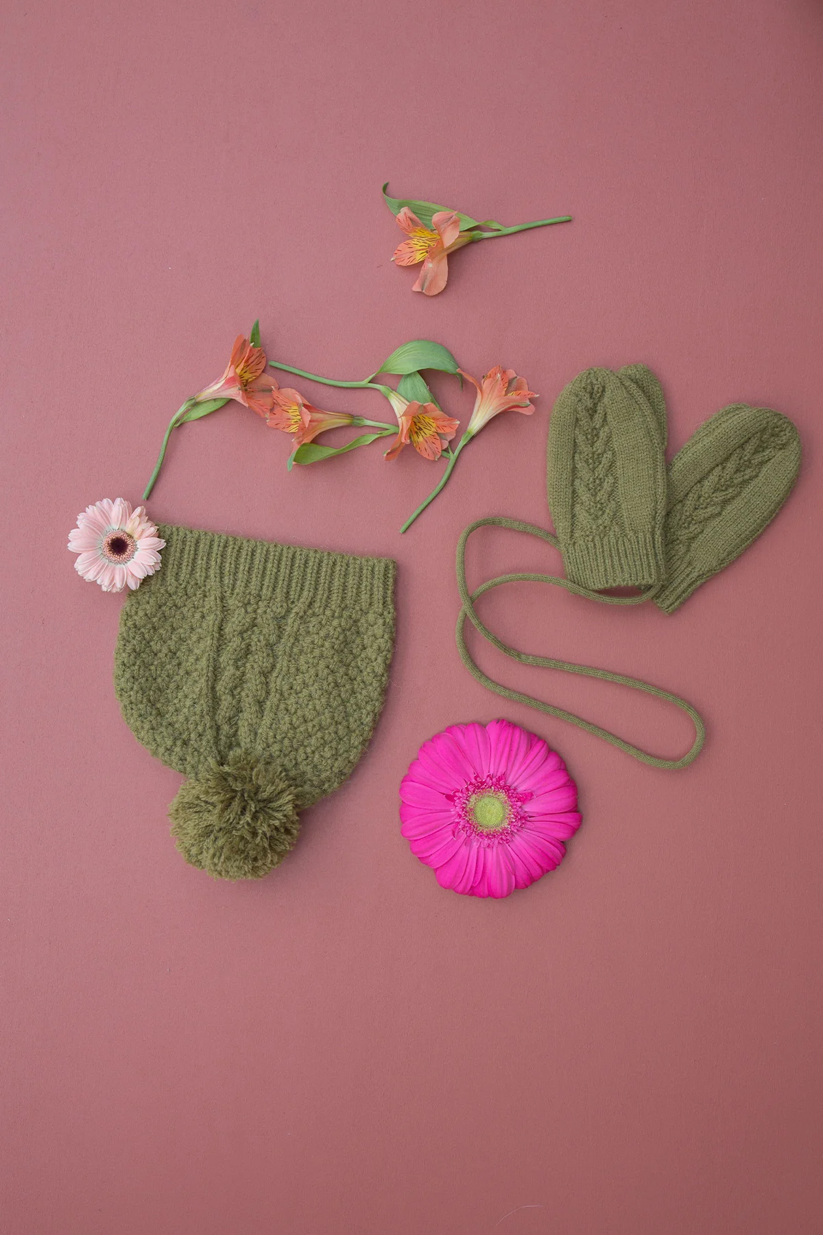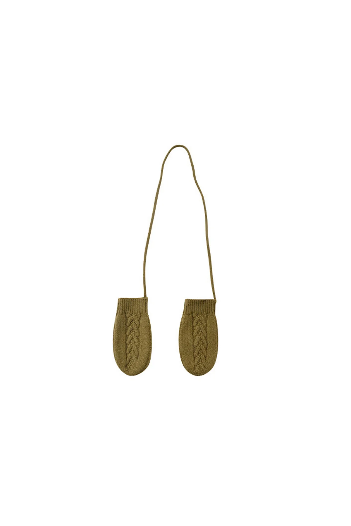 - Moufles tricotées avec détails de torsades et jeux de points fantaisie.