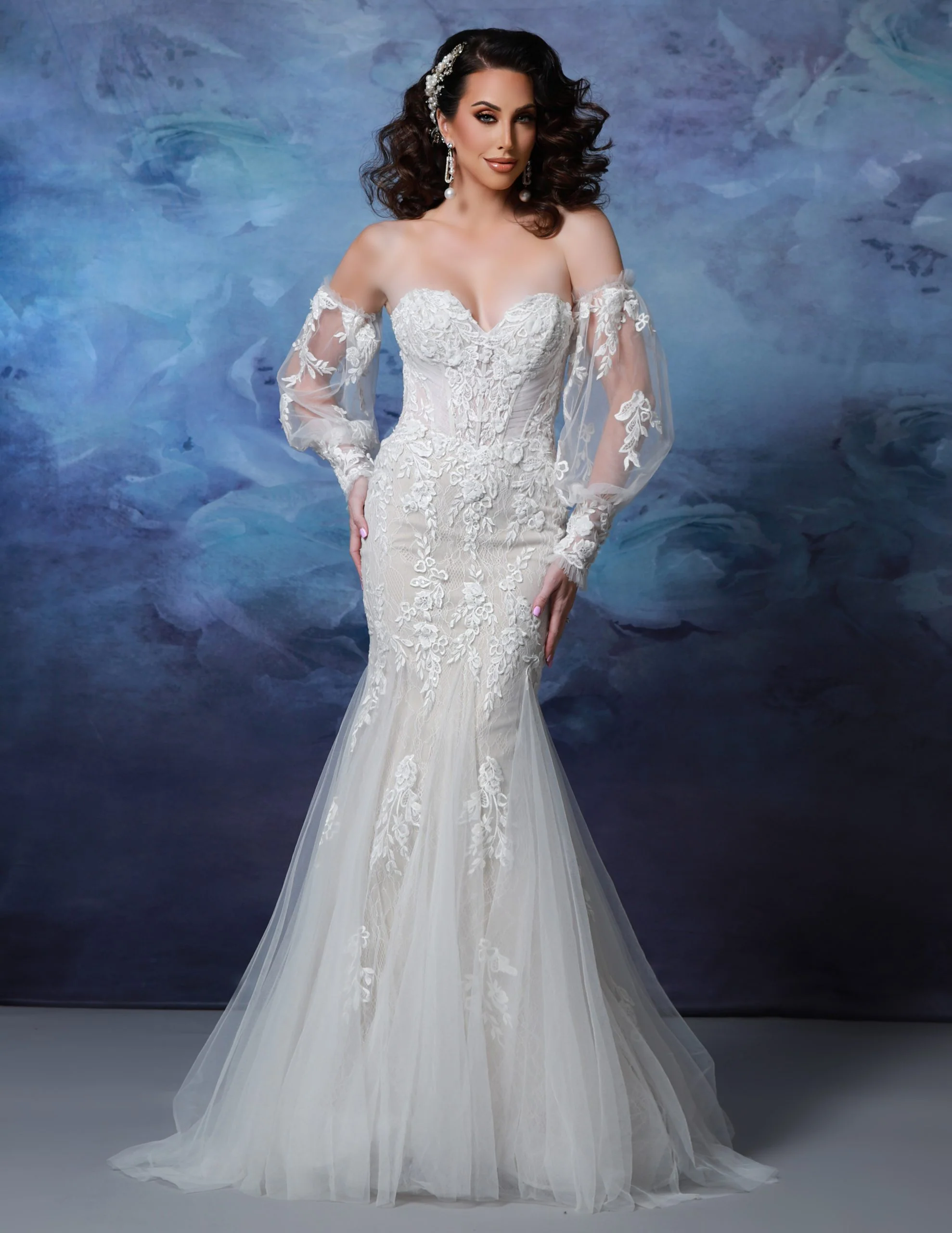 Description: La robe de mariée Paloma incarne l’élégance et le raffinement. Avec sa dentelle délicate et son tulle léger, elle offre un look aérien et romantique. Le col coeur met en valeur le décolleté tandis que les manches amovibles permettent de jouer avec l’esthétique tout en offrant un confort optimal. Le bustier effet corset accentue la silhouette pour un effet glamour et sophistiqué.