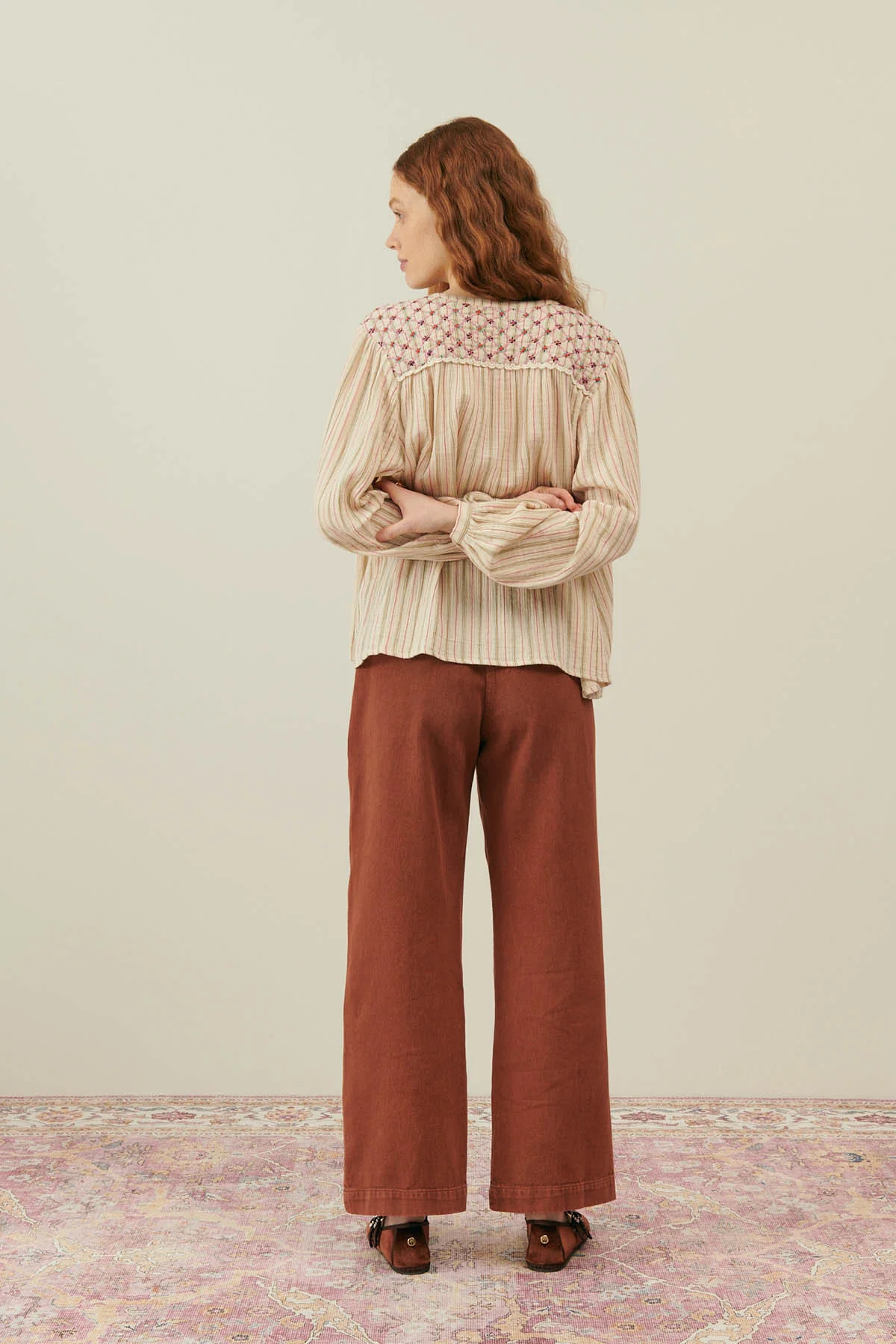 Le pantalon Arlovie à la coupe loose se décline en 2 coloris. Grâce à la surteinture, chaque pièce est singulière et a sa propre teinte. Elle requiert une attention particulière lors du lavage : à laver seule une première fois, puis avec des vêtements de couleur similaire.
