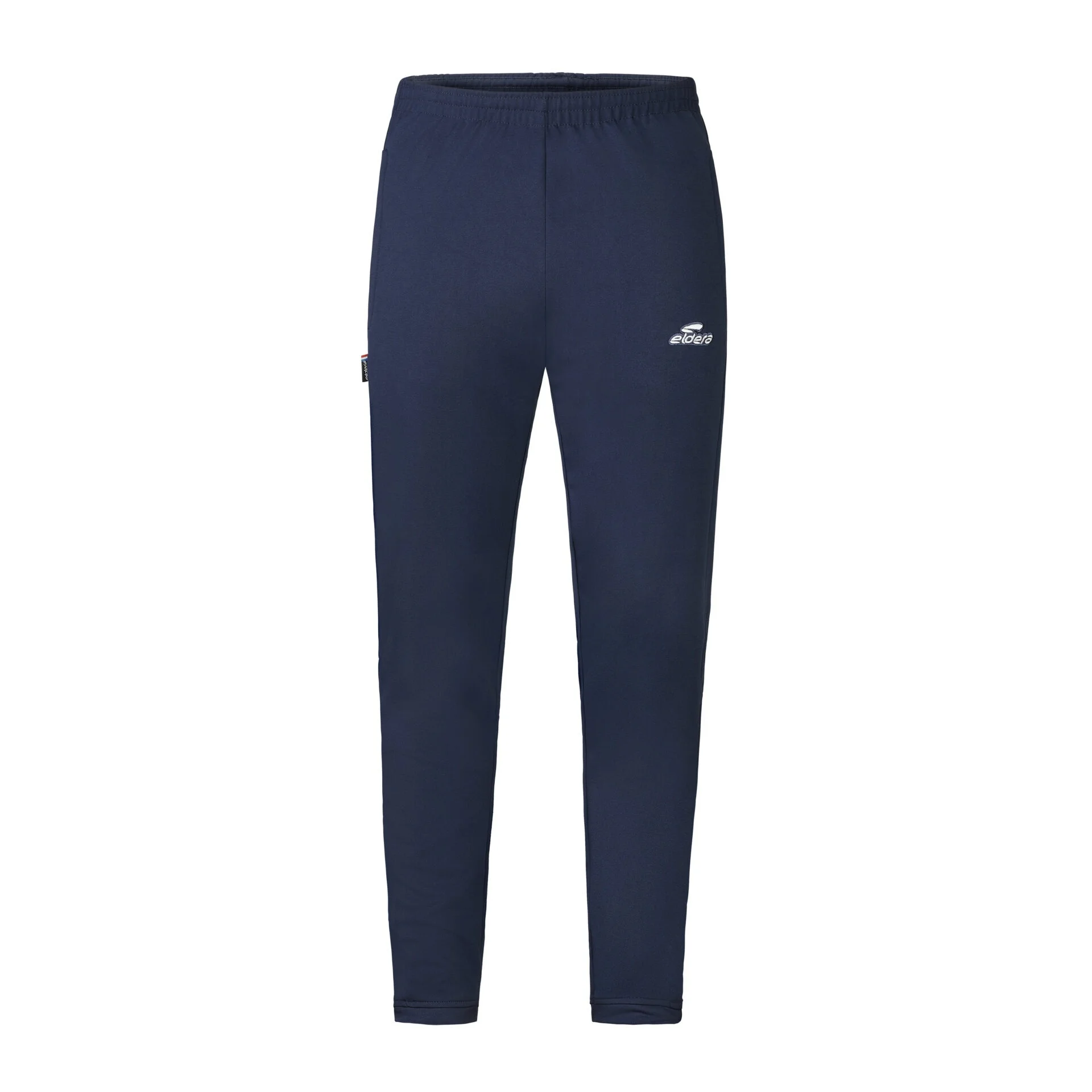 Pantalon en polyester avec poches latérales zippées. Maintien à la taille à l’aide d’un élastique et d’un cordon de serrage intérieur. Finitions sur le bas du pantalon avec empiècements doublés et fermetures zippées. Logo Eldera brodé. Composition 100% polyester.