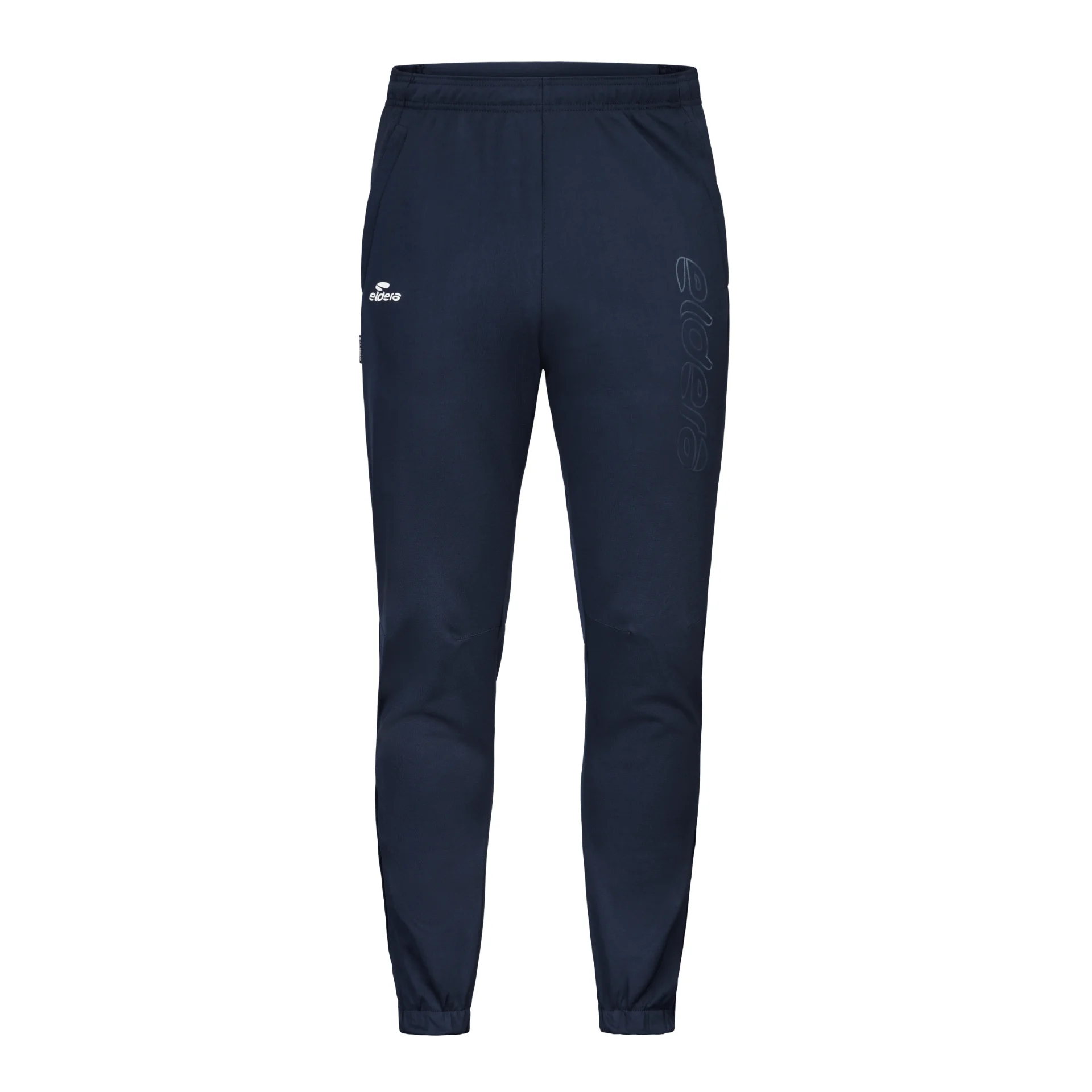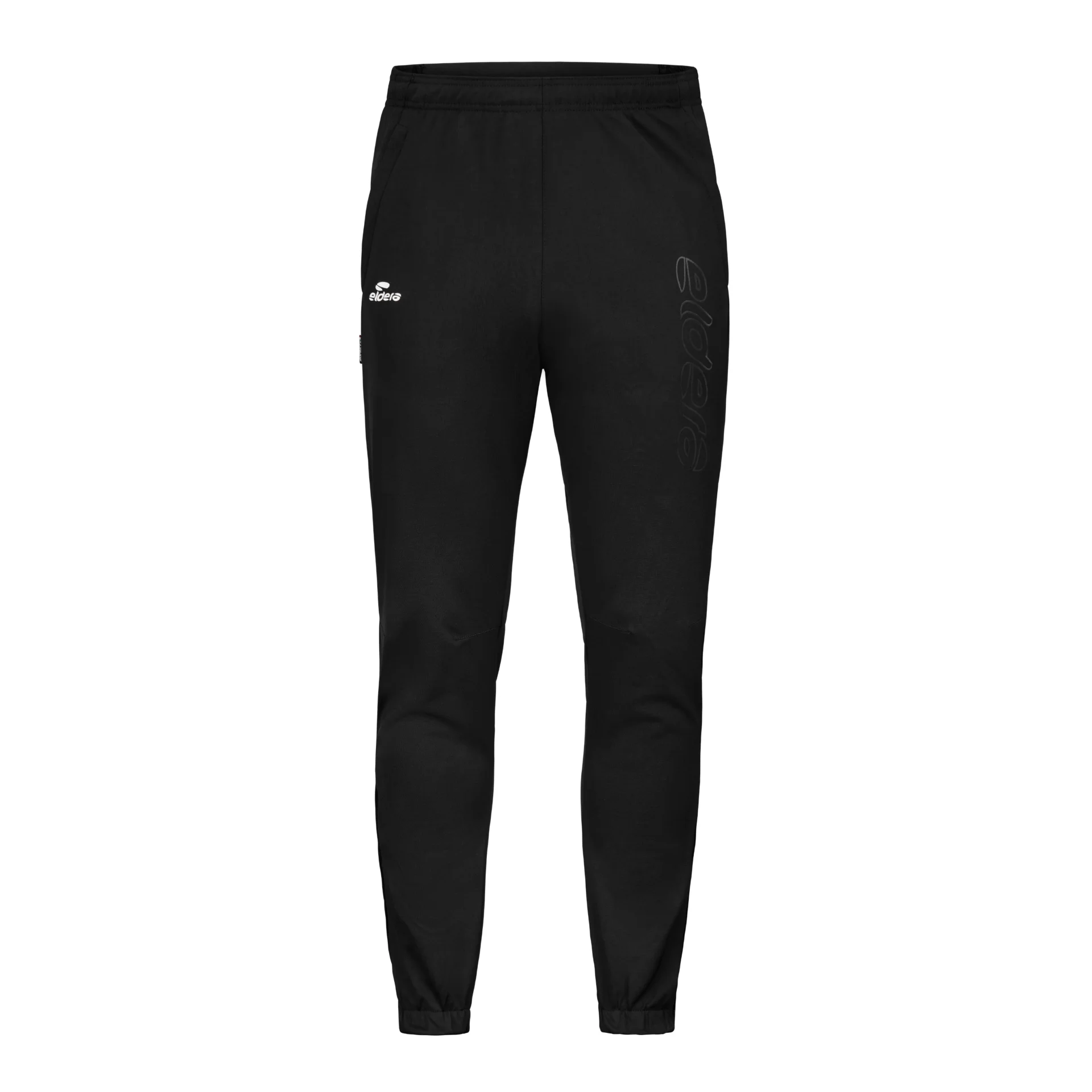 Pantalon en polyester, résistant et confortable. Empiècements en tissu mesh sur la partie supérieure dos et latérale, permettant d’évacuer la transpiration et de rester au sec lors de la pratique. Ajustement et maintien parfait à la taille à l’aide d’une ceinture élastique avec cordon de serrage. Poches latérales zippées. Finition bas du pantalon avec élastique et zip. Logos printés et écriture Eldera en surbrillance sur la cuisse avant gauche.