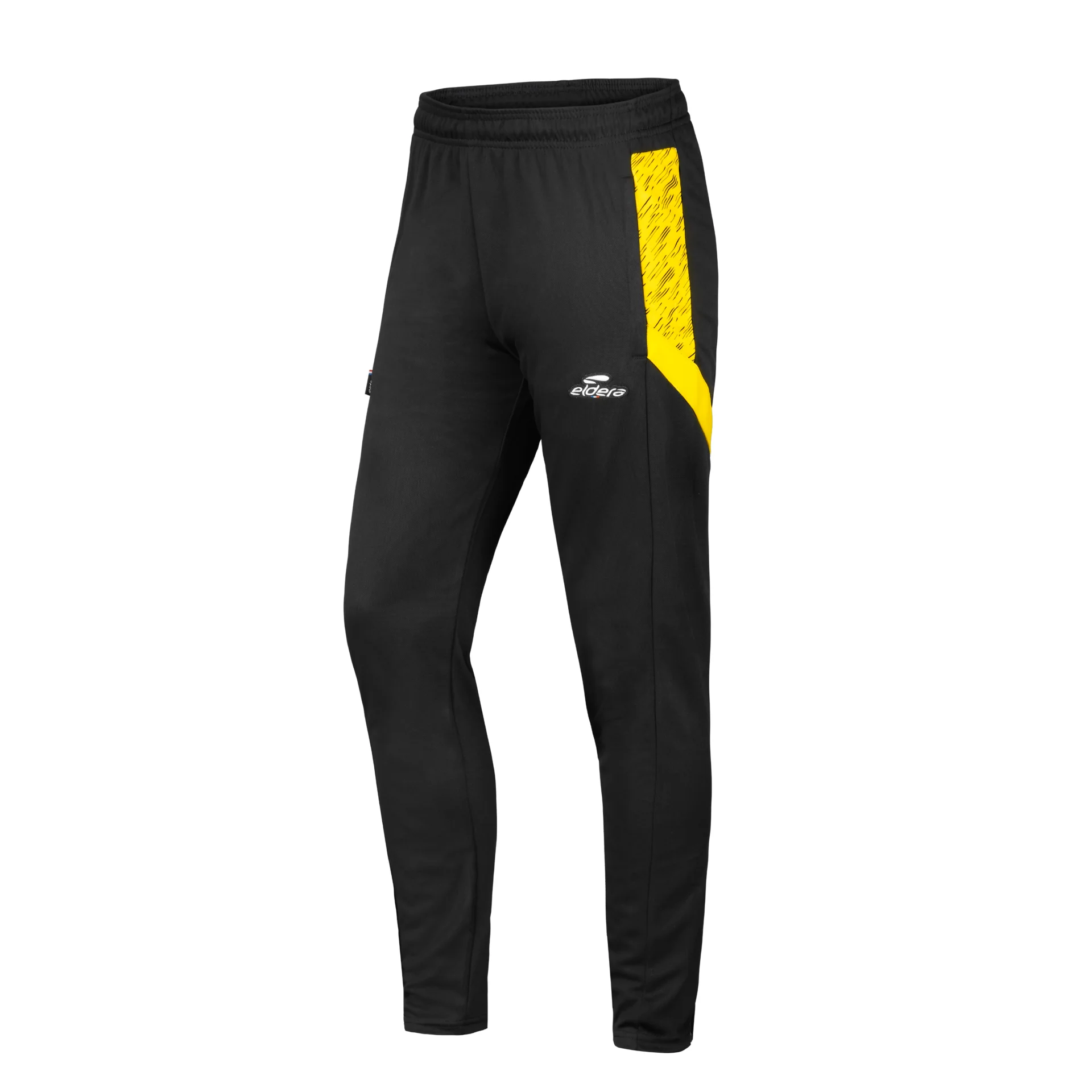 Pantalon en matière polyester avec empiècements de tissus sublimés sur les côtés. Maintien du pantalon à la taille grâce à un cordon de serrage intérieur. Poches latérale zippées. Possibilité d’ouvrir le bas du pantalon à l’aide de zips. Finition avec écusson logo sur la cuisse. Composition 100% polyester.