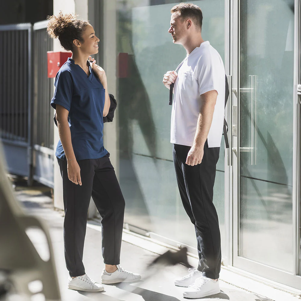 Le pantalon SOFT style jogg-pant est un modèle ultraconfortable. Son design sport et sa coupe femme très fonctionnelle seront également appréciés après vos heures de travail. Super agréable sur la peau, la douce matière Stretch offre un niveau de bien-être imbattable et une liberté de mouvements. Grâce à la respirabilité de la maille, vous transpirez moins vite. La matière infroissable est vite sèche : cela vous fait gagner du temps et vous permet de porter votre pantalon presque tous les jours. Le design du jogg-pant a été pensé et testé avec et sur des professionnels de la santé et des soins : la meilleure façon de vous proposer un modèle parfaitement adapté à vos besoins quotidiens. La ceinture extensible dans le dos est très confortable, elle accompagne chaque mouvement. Deux poches côtés, offrent beaucoup d’espace de rangement. Le bas de jambe resserré accentue le style mode & sport du pantalon SOFT.