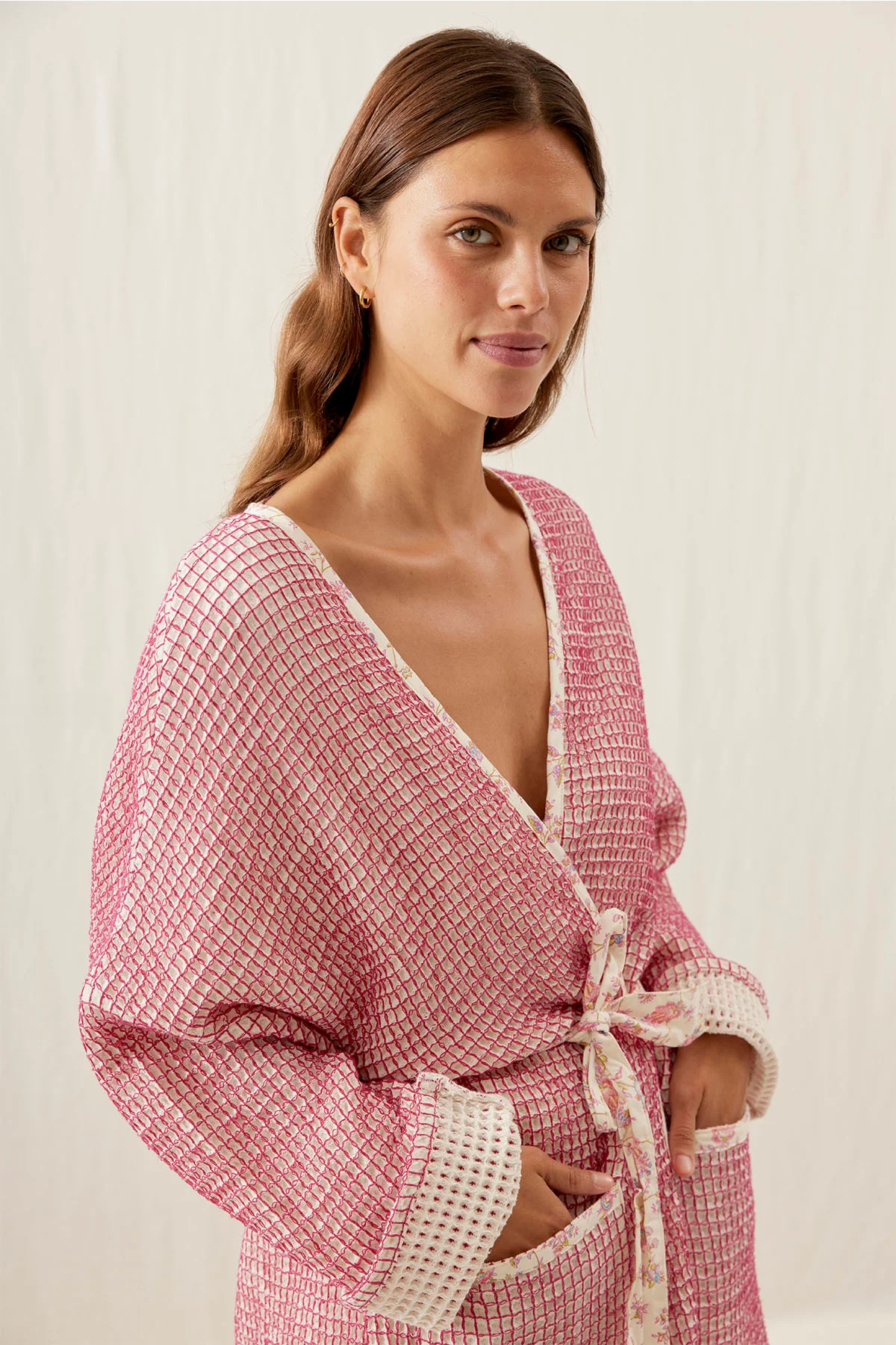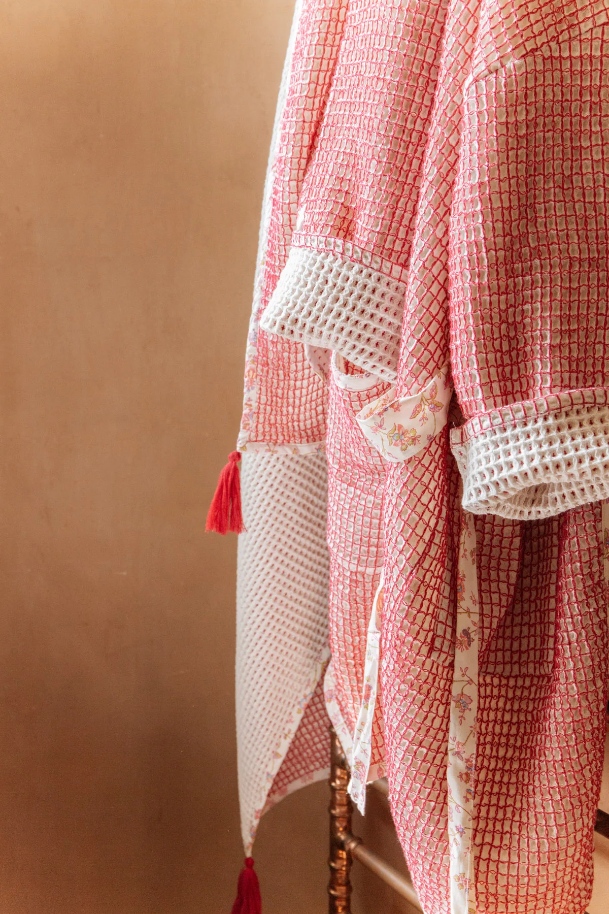 - Peignoir en nid d’abeille contrasté.