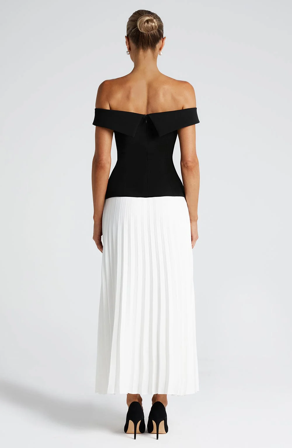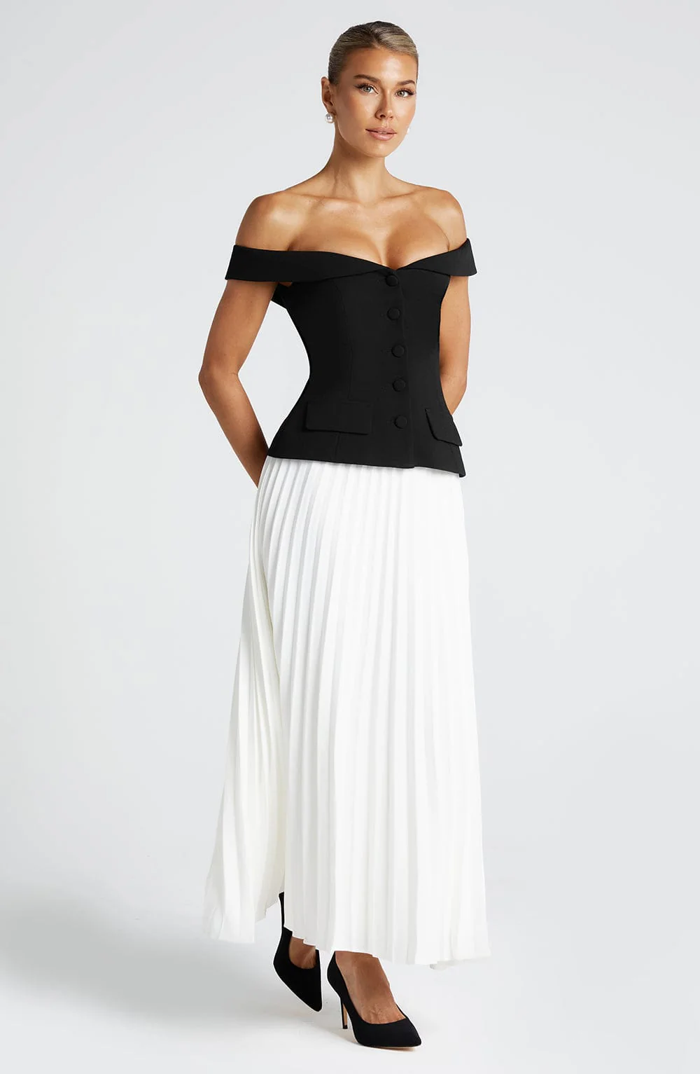 La jupe longue Penny en ivoire incarne l’élégance absolue, conçue pour accompagner chaque pas avec fluidité. Confectionnée en crêpe luxueux non extensible, cette jupe plissée offre une silhouette raffinée et sophistiquée. Son design classique en fait une pièce polyvalente du dressing, à associer avec le haut Blakely pour un look chic ou avec le haut Philipa pour une tenue plus habillée.