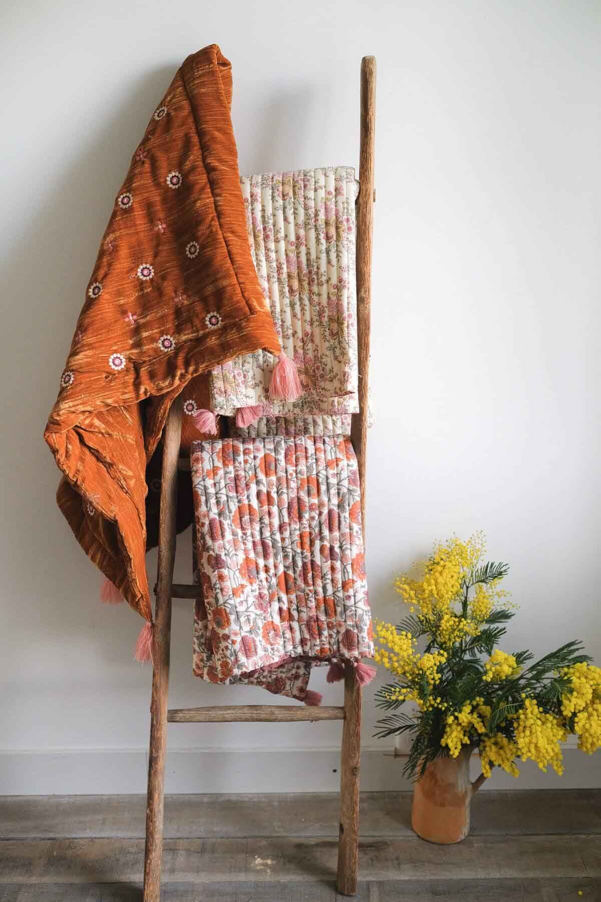 C’est avec des envies de passer l’hiver dans un cocon, que la créatrice a imaginé cette première collection. Tissus tout doux et matières douillettes se mélangent dans ce plaid parfaitement pensé pour des journées de grande paresse, passées entre le lit et le canapé.
