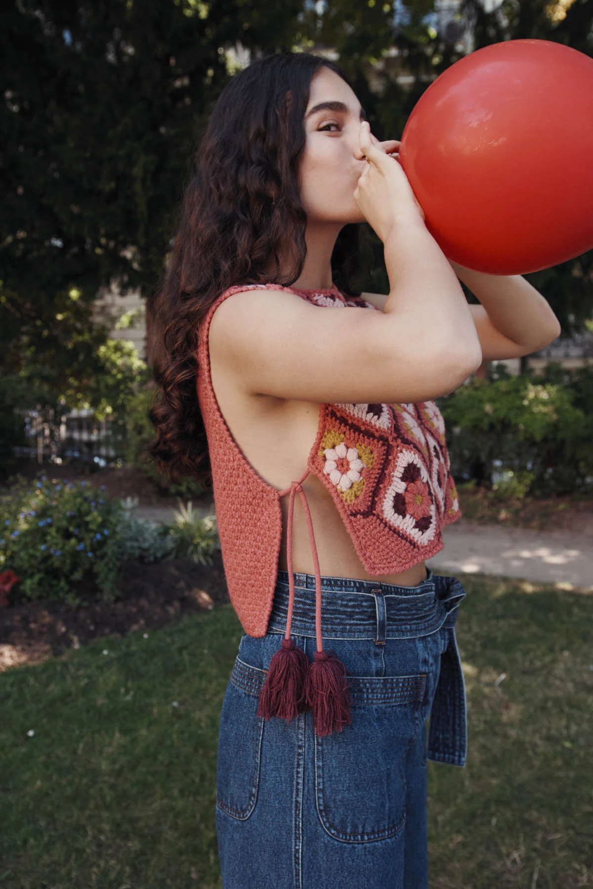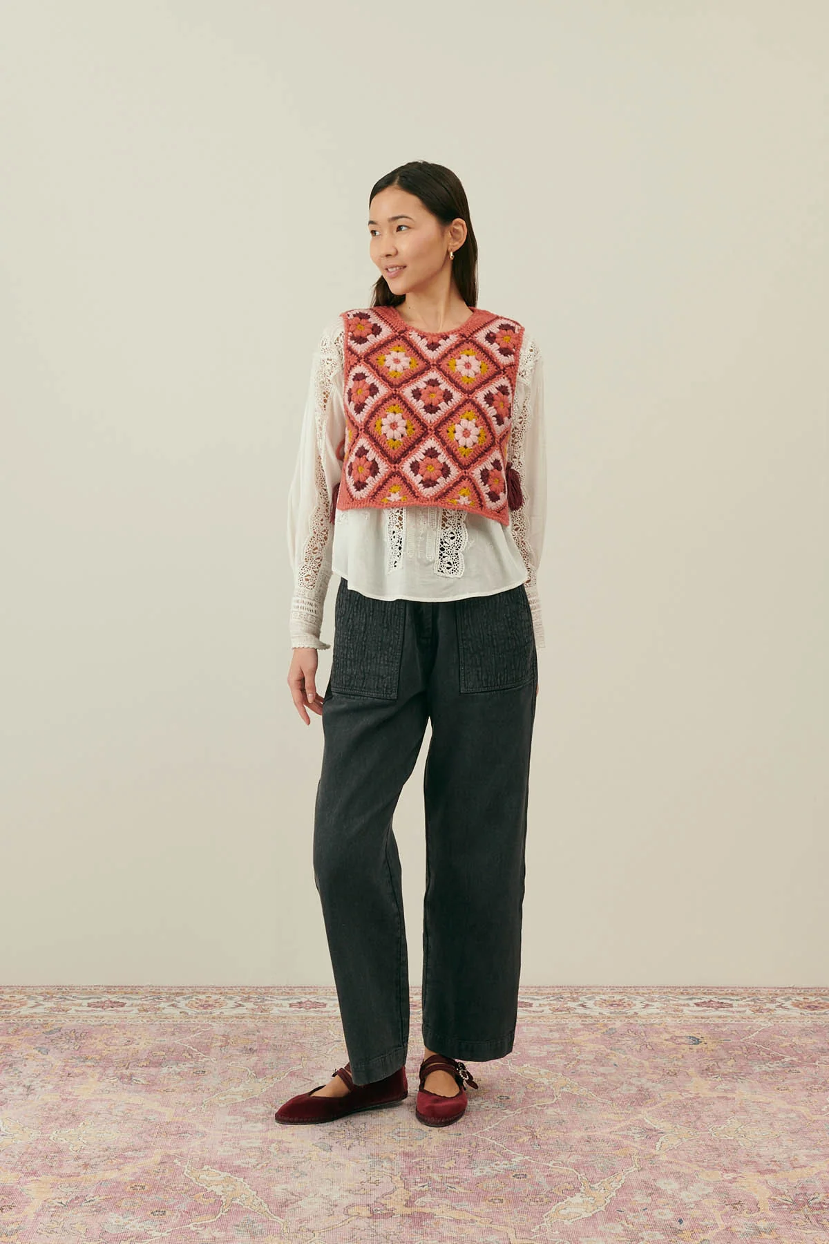 Précieuse et poétique, cette pièce est à glisser dans votre vestiaire sans hésitation. Le crochet, réalisé entièrement à la main, illustre notre admiration pour le pouvoir de la main et le temps long.