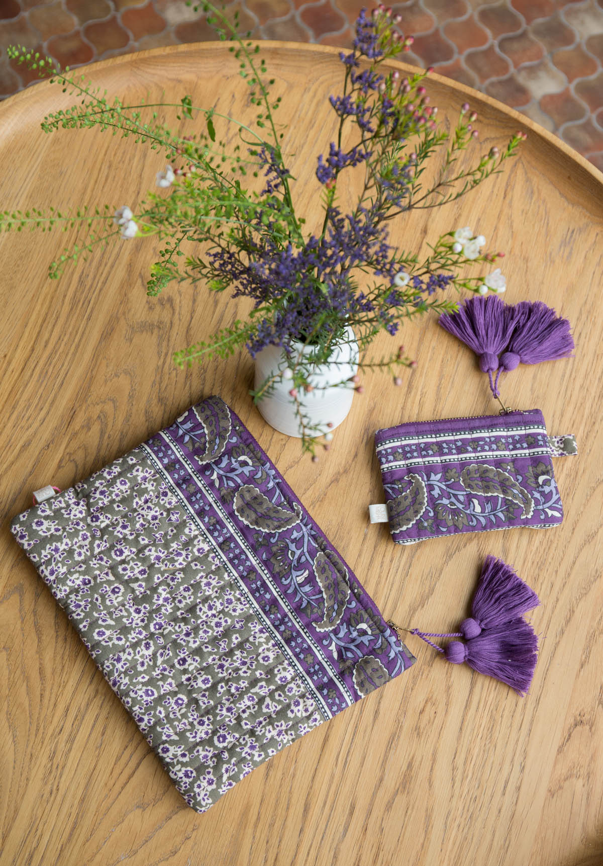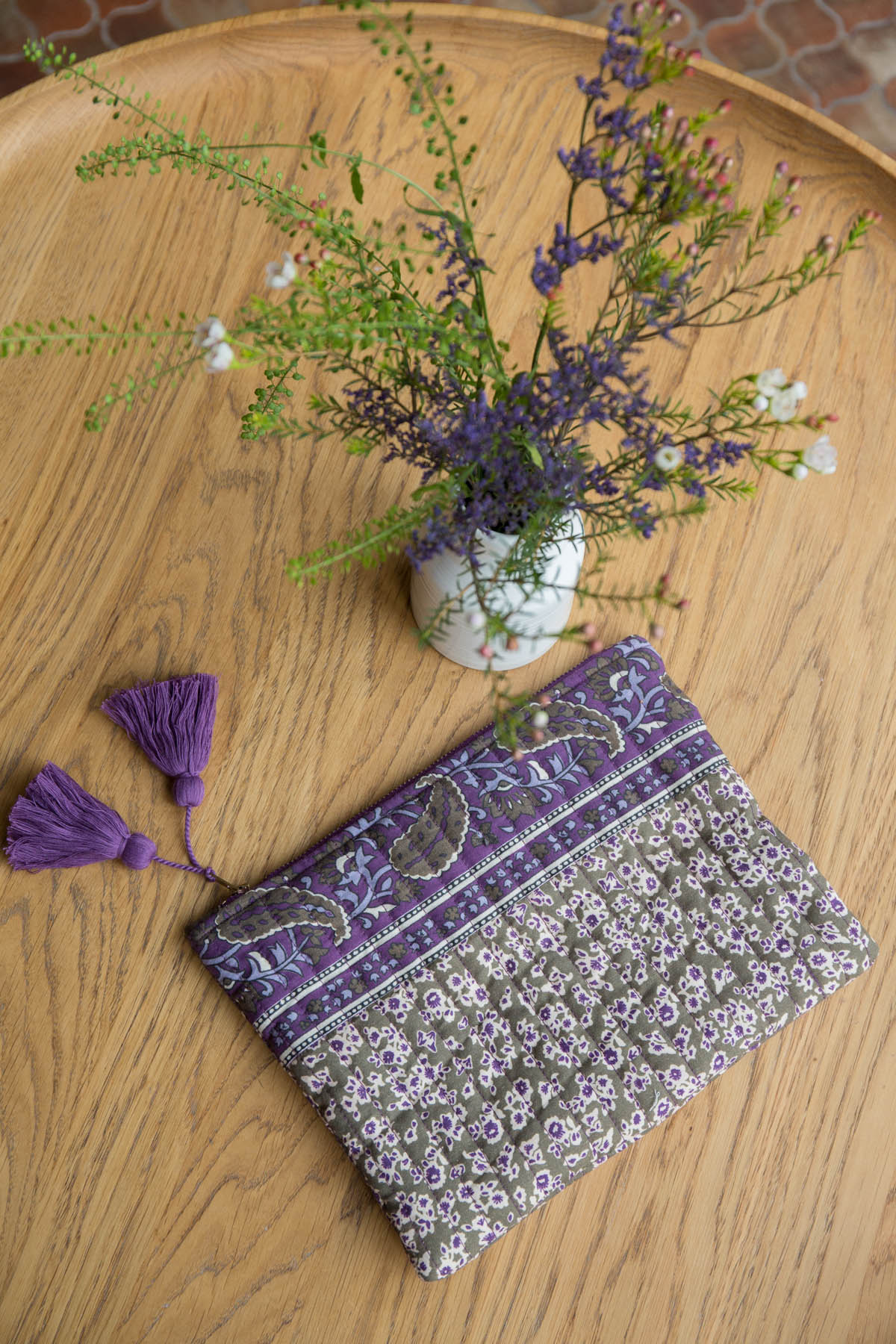 Accessoire pratique et bohème, cette pochette matelassée et pomponnée est indispensable au quotidien. On y glisse ses petites affaires, on s’en sert comme d’un grand portefeuille, bref elle ne nous quitte jamais. À offrir ou à s’offrir !