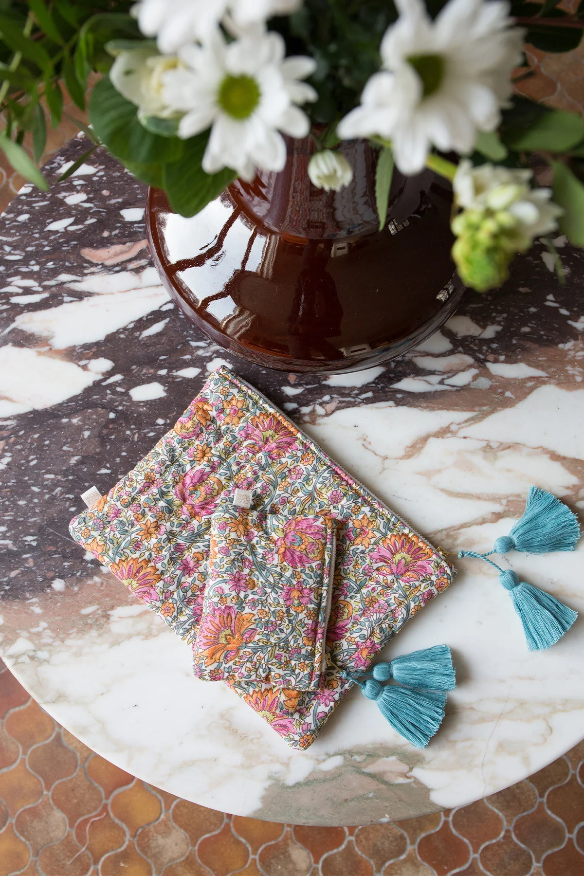 Accessoire pratique et bohème, cette pochette matelassée et pomponnée est indispensable au quotidien. On y glisse ses petites affaires, on s’en sert comme d’un grand portefeuille, bref elle ne nous quitte jamais. À offrir ou à s’offrir !
