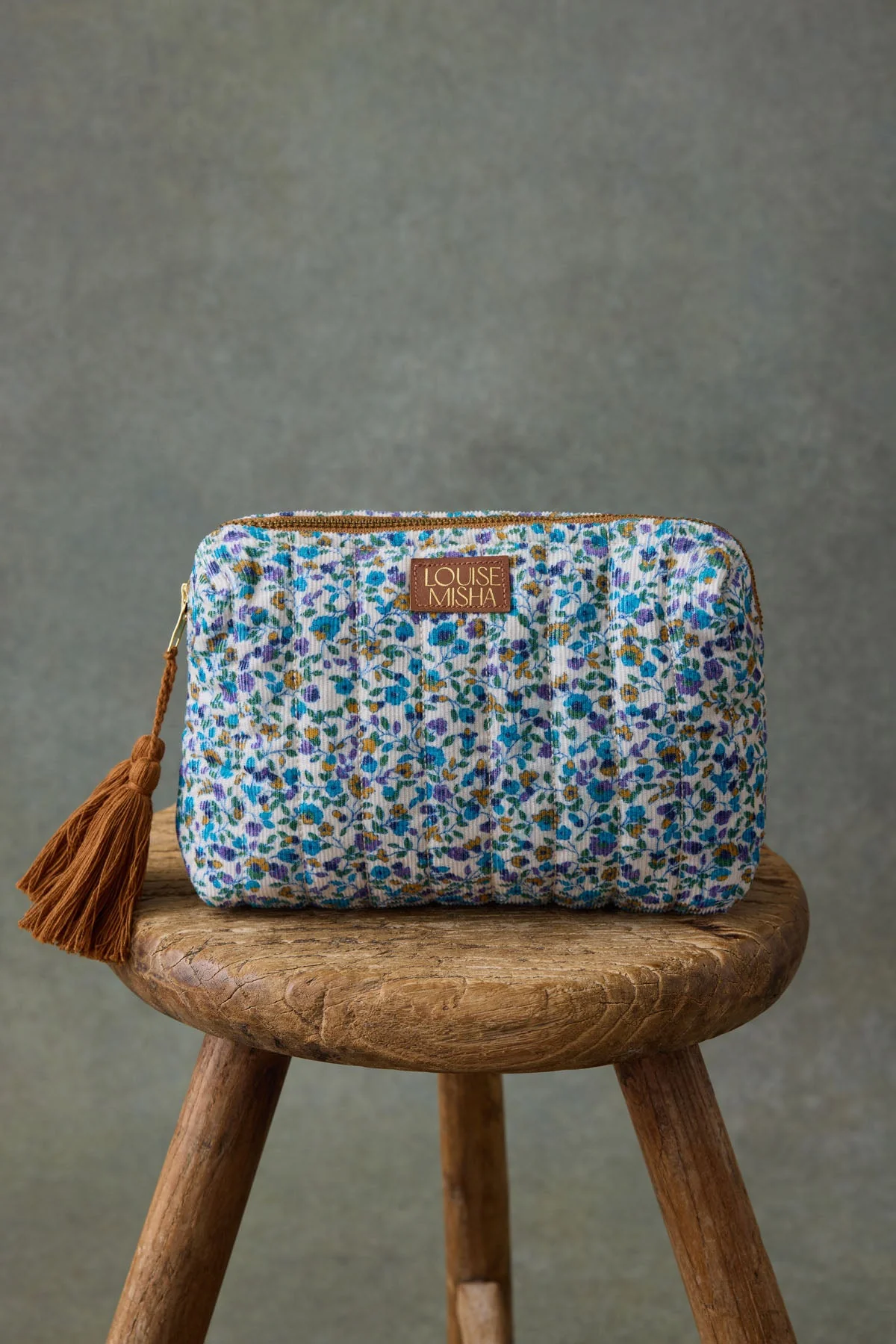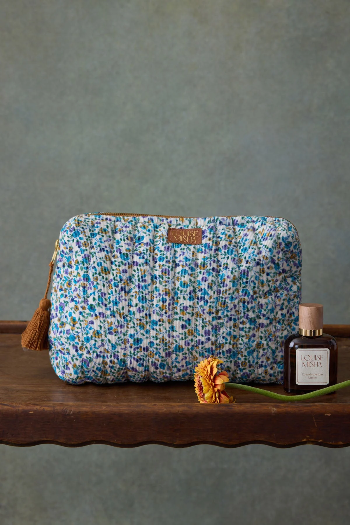 - Trousse matelassée en velours milleraies avec surpiqûres.