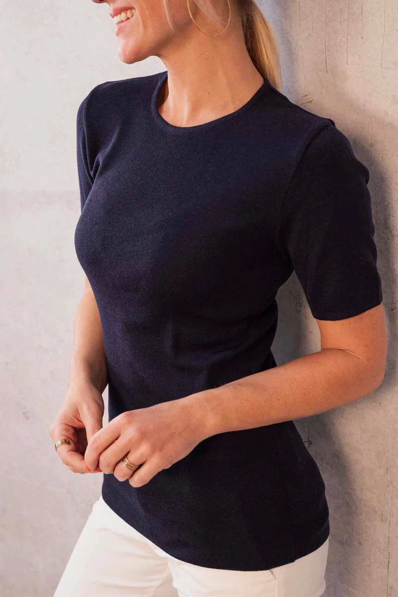 Pull en 100% laine mérinos, à la coupe droite et à l’encolure ronde intemporelle. Ses manches aux coudes, sa longueur de 68 cm et ses finitions côtelées 1×1 lui confèrent une allure sobre et soignée, parfaite en toute occasion.