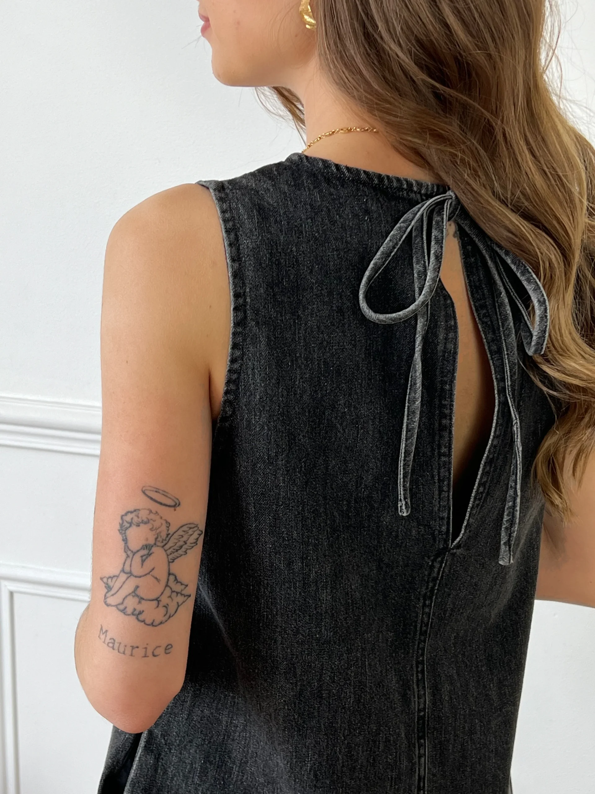 Robe courte grise foncé en jean femme
