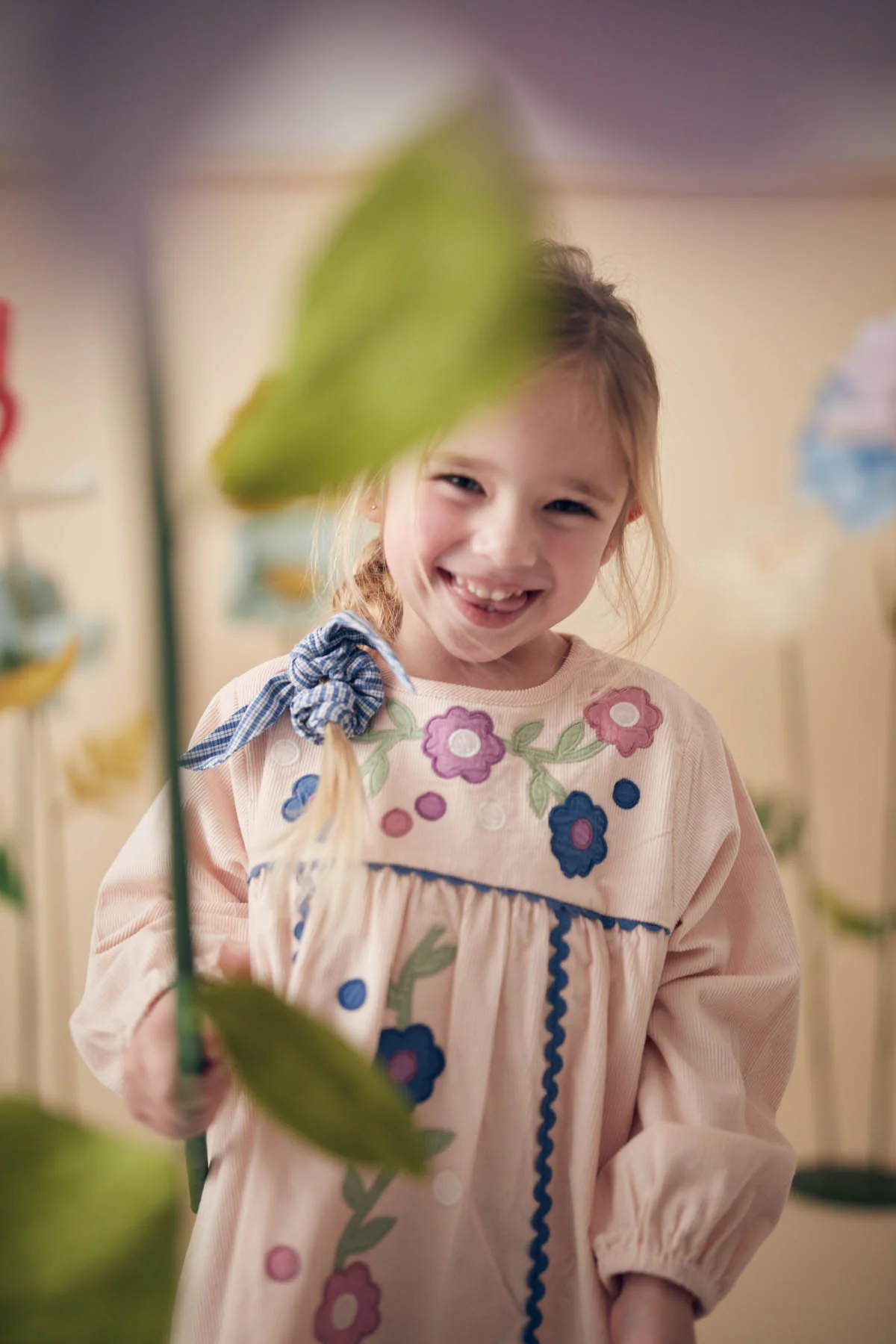 - Fleurs brodées à la machine à pédale et découpées à la main.