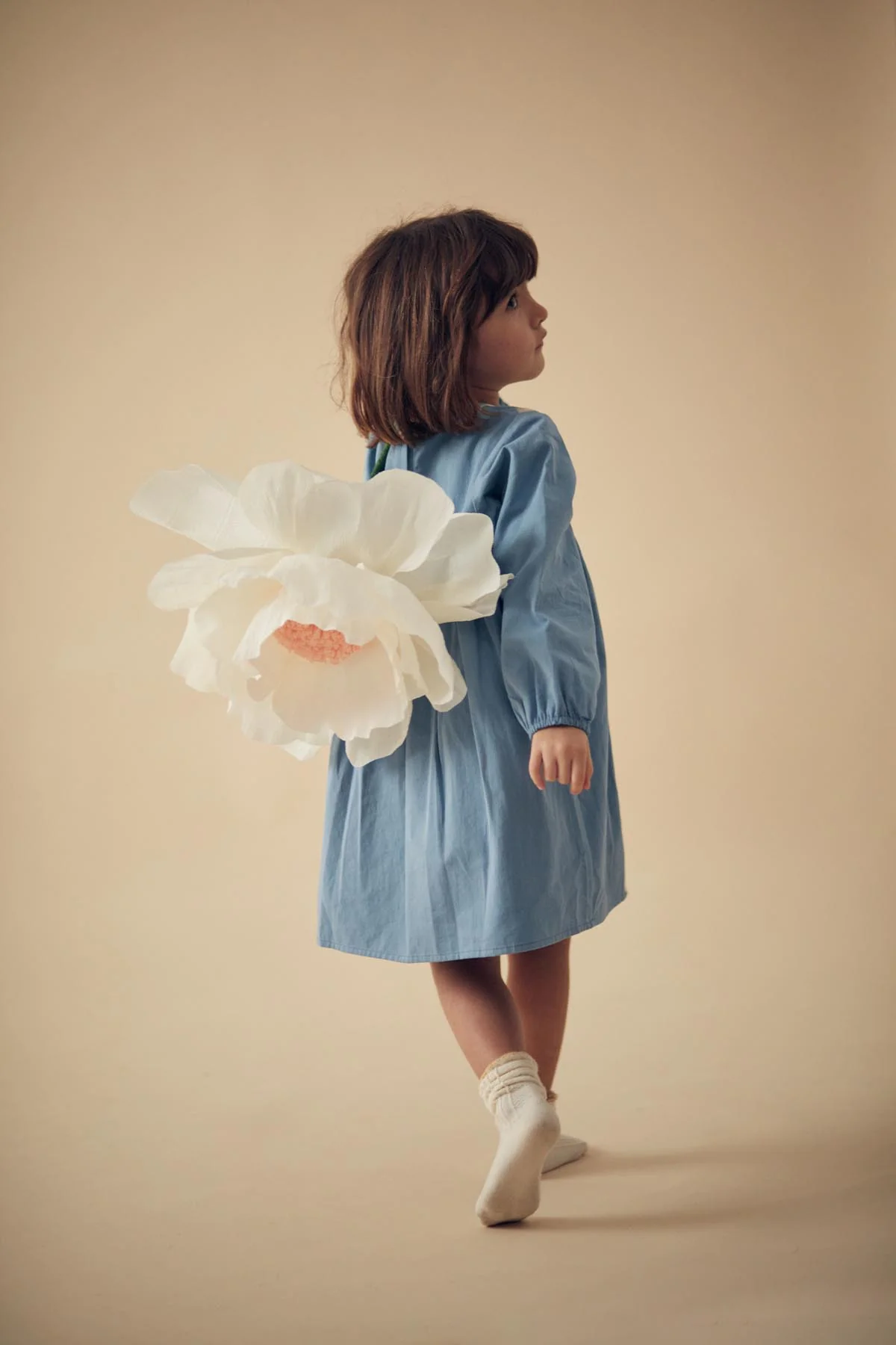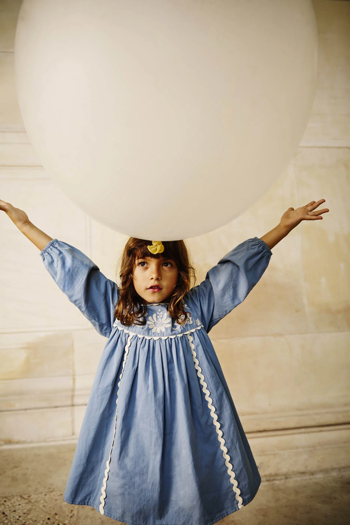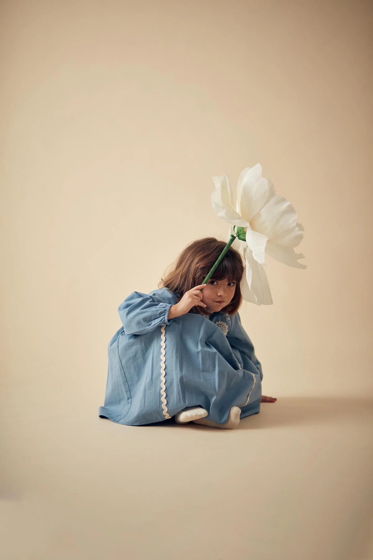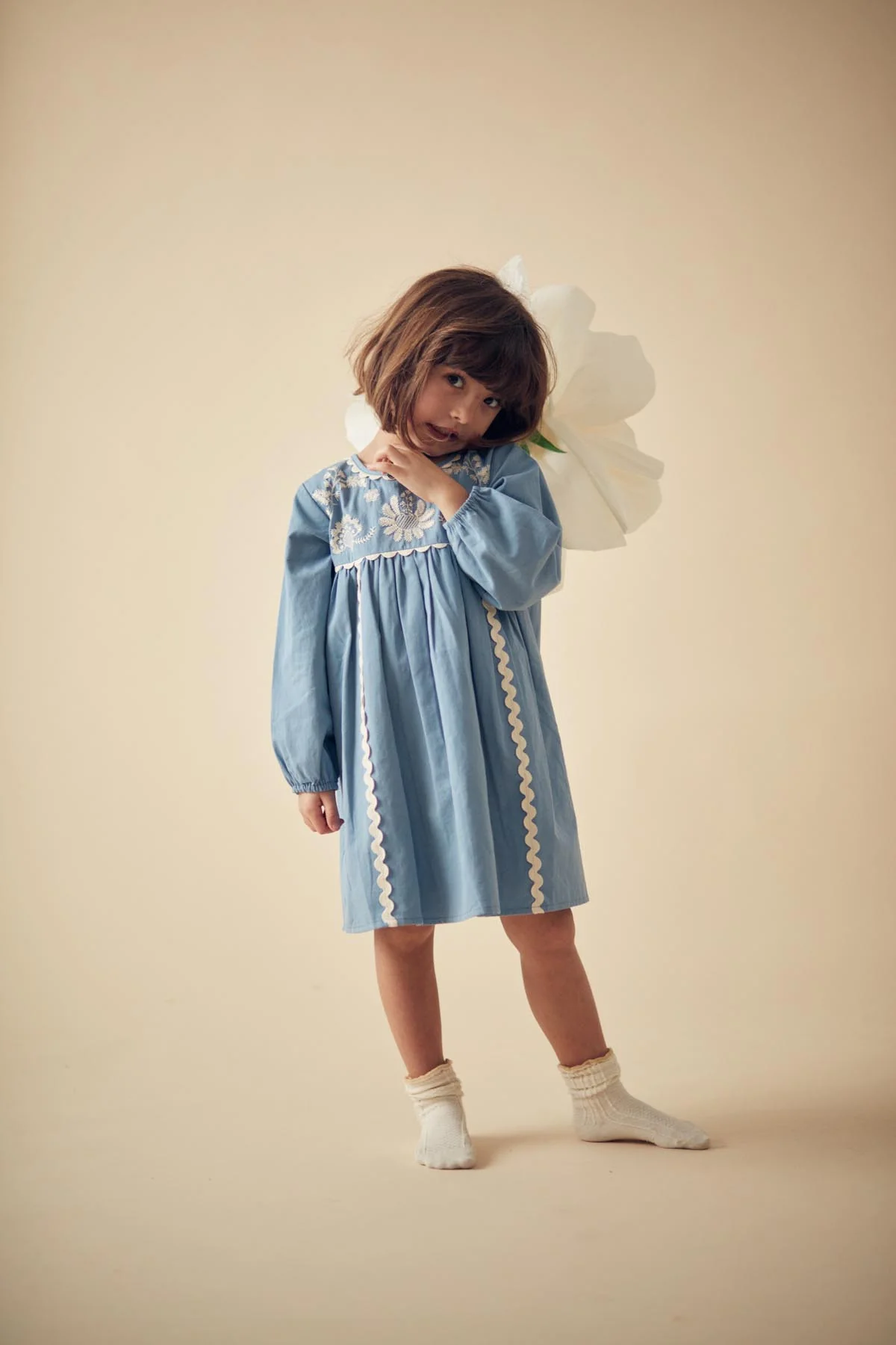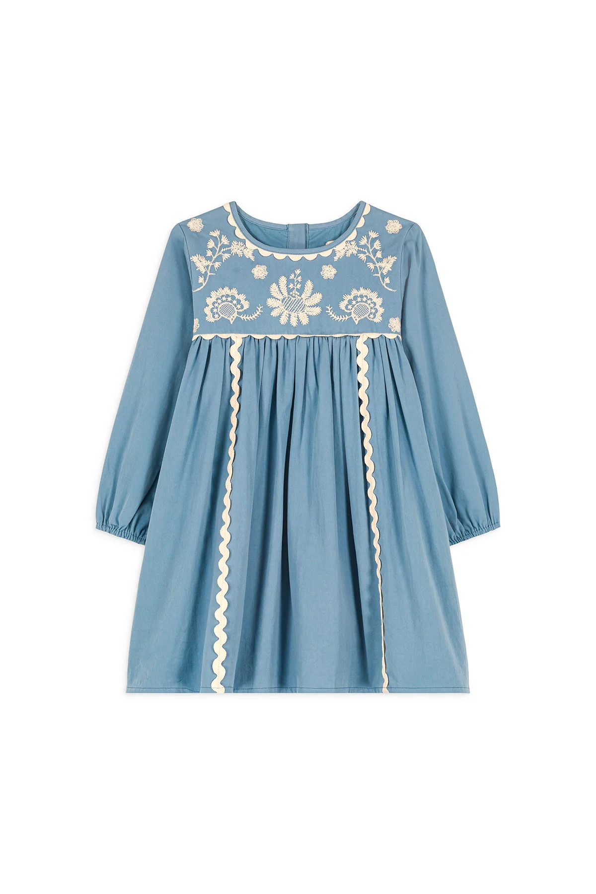 La petite robe effet denim version Louise Misha ! Ses broderies fleuries et ses détails de croquet font toute la différence : une robe à la fois essentielle et singulière, qui plaira à toutes les petites filles, à porter inlassablement.