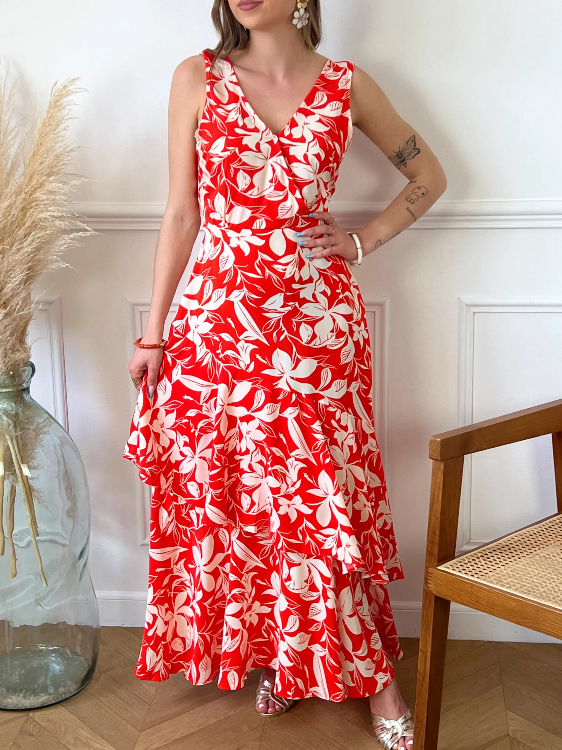 Une robe longue orange et écru offre une combinaison lumineuse et estivale de couleurs. L’orange apporte une touche vive et énergique, tandis que l’écru, une nuance neutre, ajoute de l’équilibre et de la légèreté à la tenue.