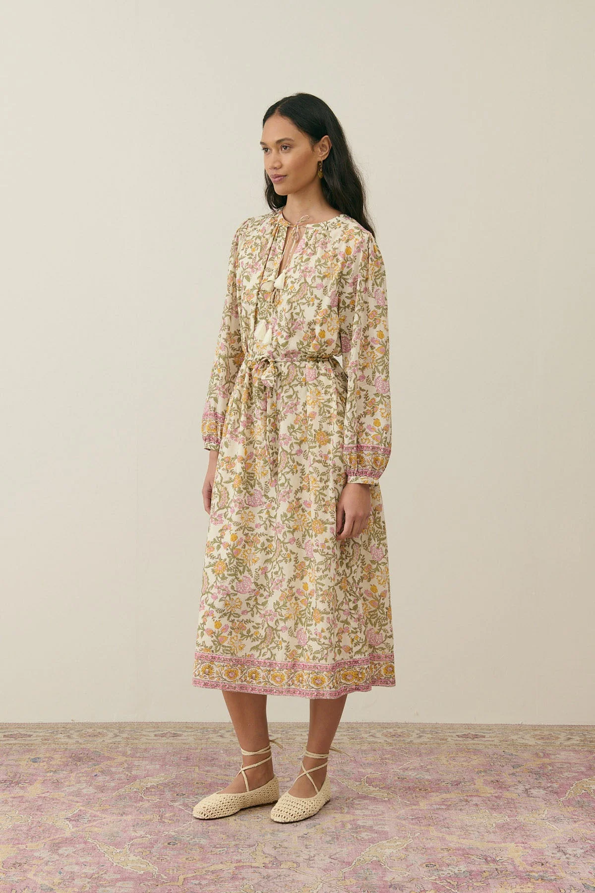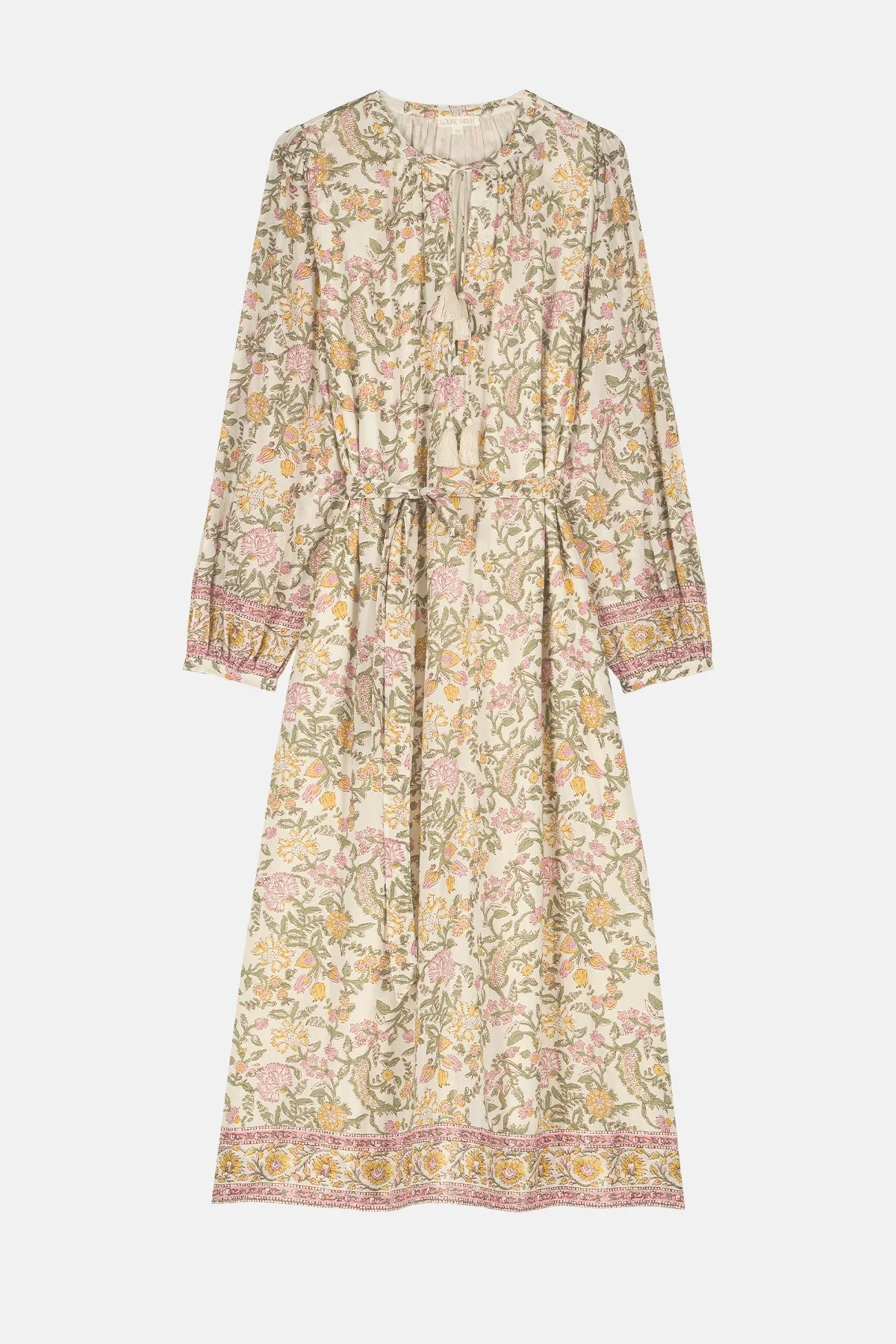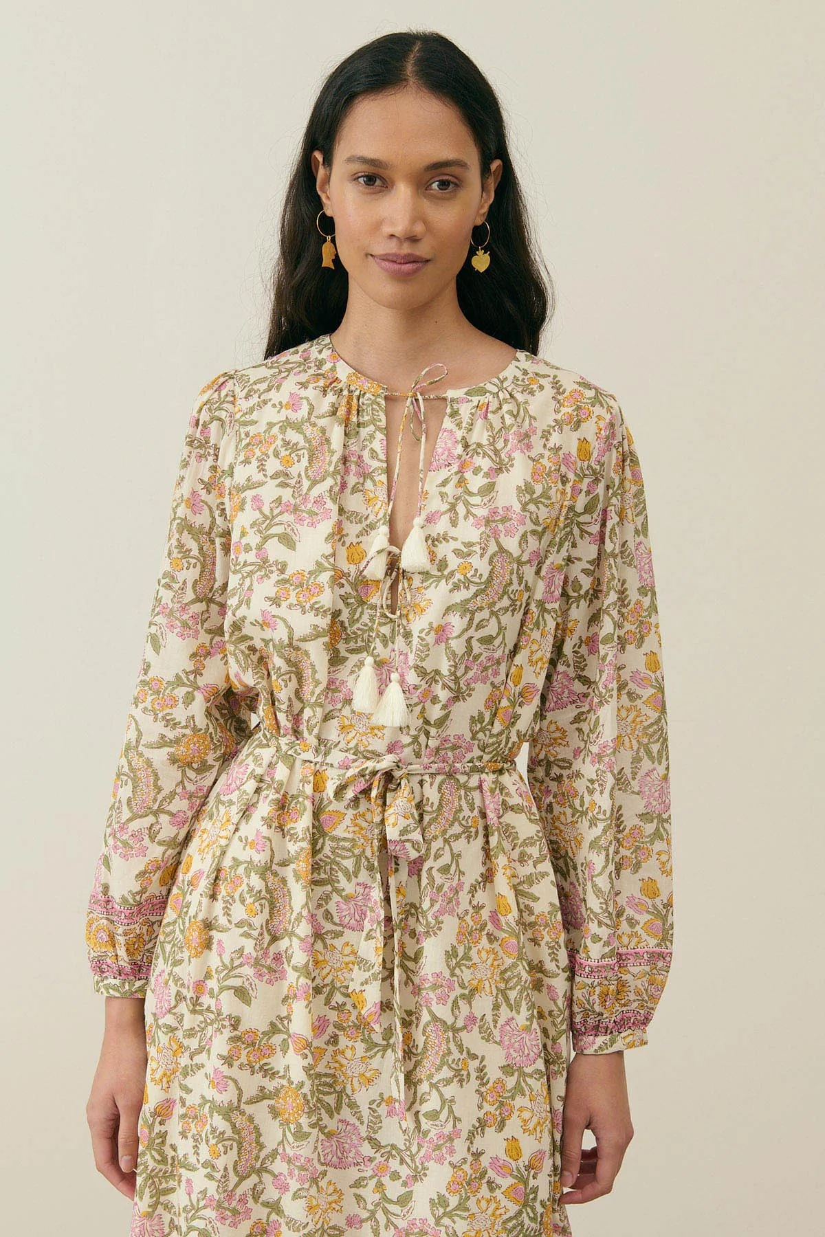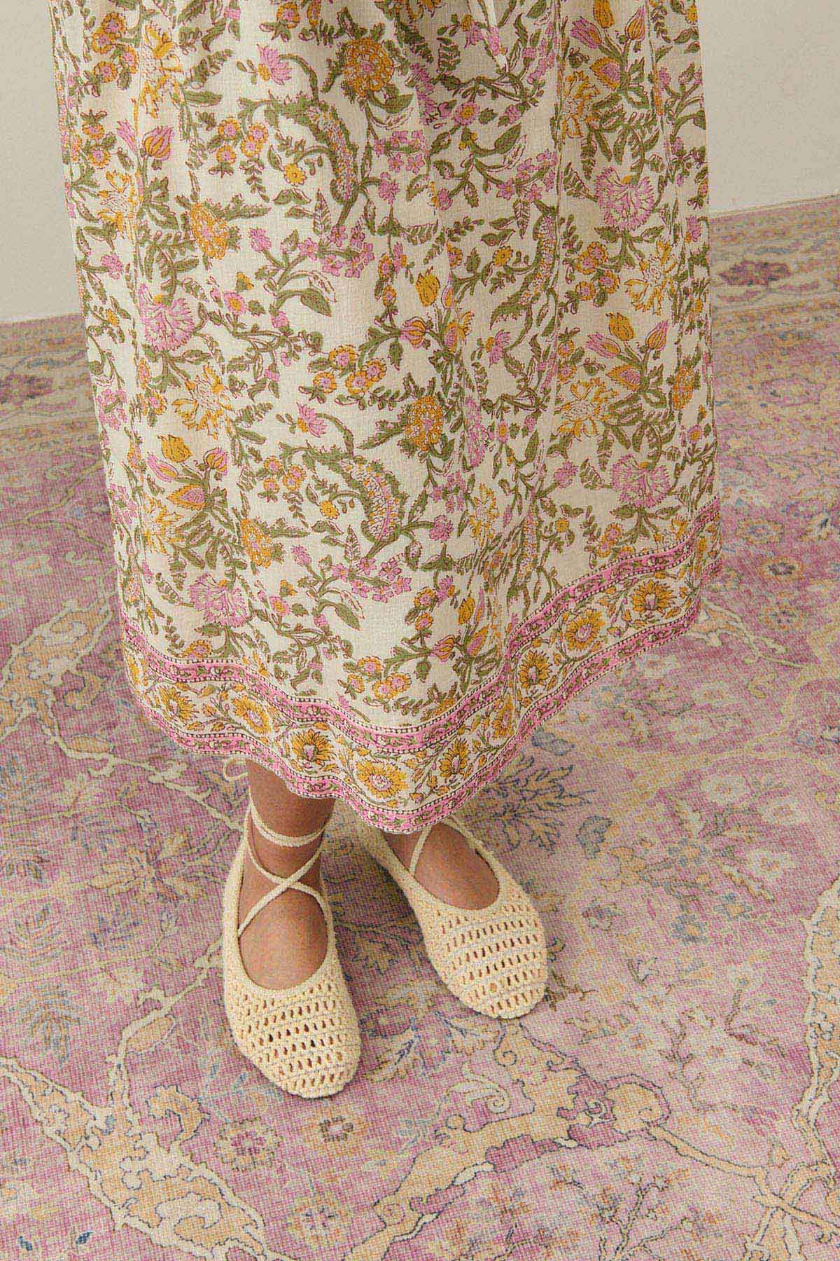 - Robe longue en voile de coton fleuri.