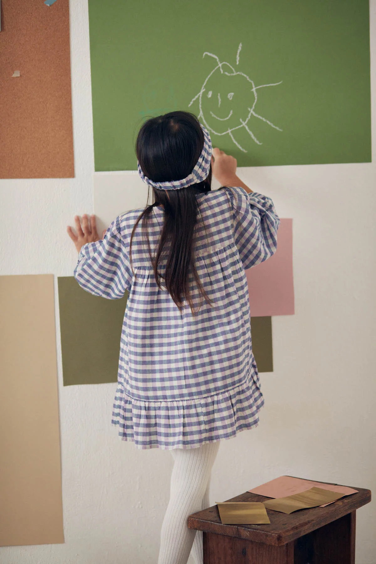 - Robe à carreaux en tissé-teint.