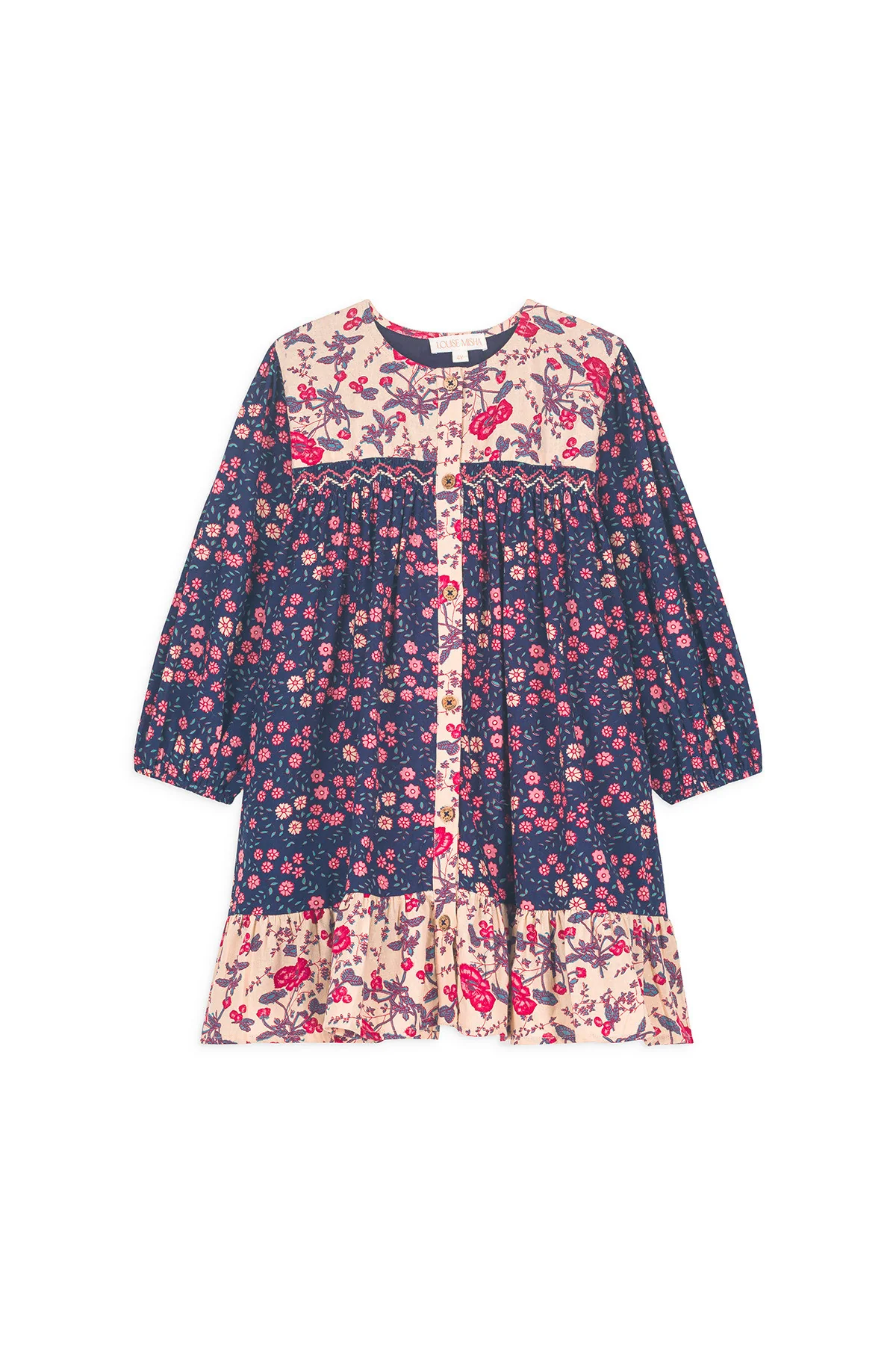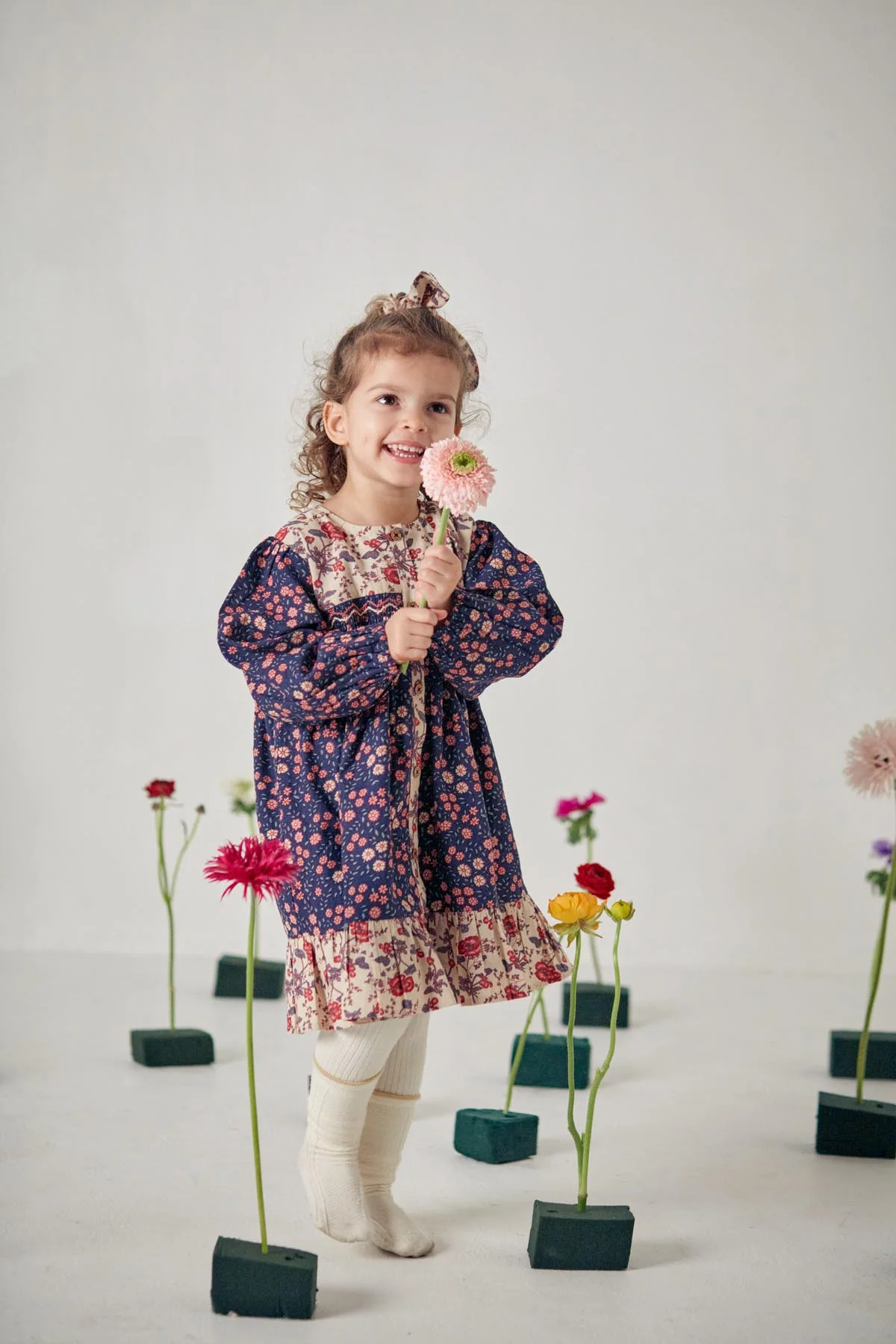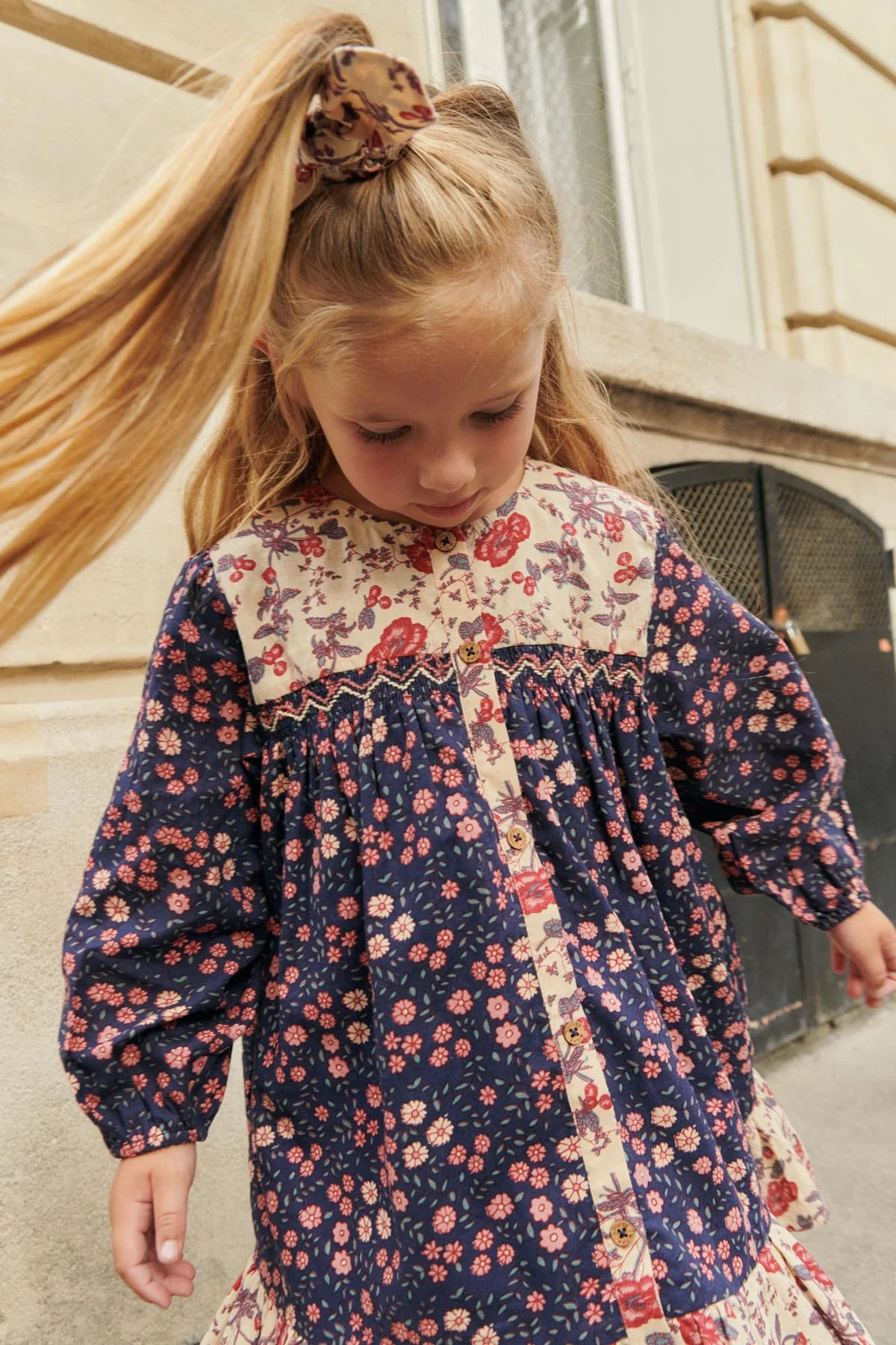 Ce nouveau vestiaire ose mélanger les imprimés de manière inattendue, à la manière des poètes surréalistes ! La robe Massilia offre une allure à la fois élégante et singulière aux petites filles qui veulent rayonner de leur propre style.