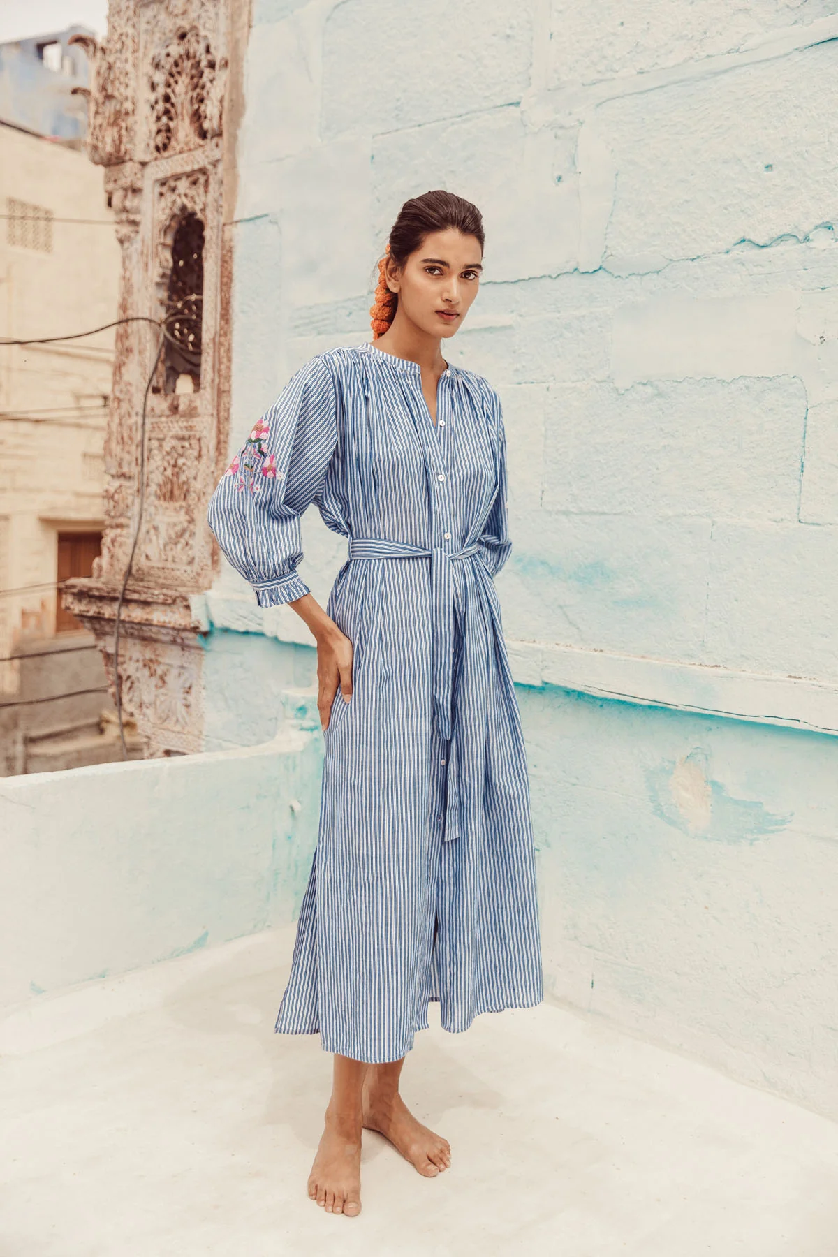 - Robe longue rayée en coton, réalisée au métier à tisser.