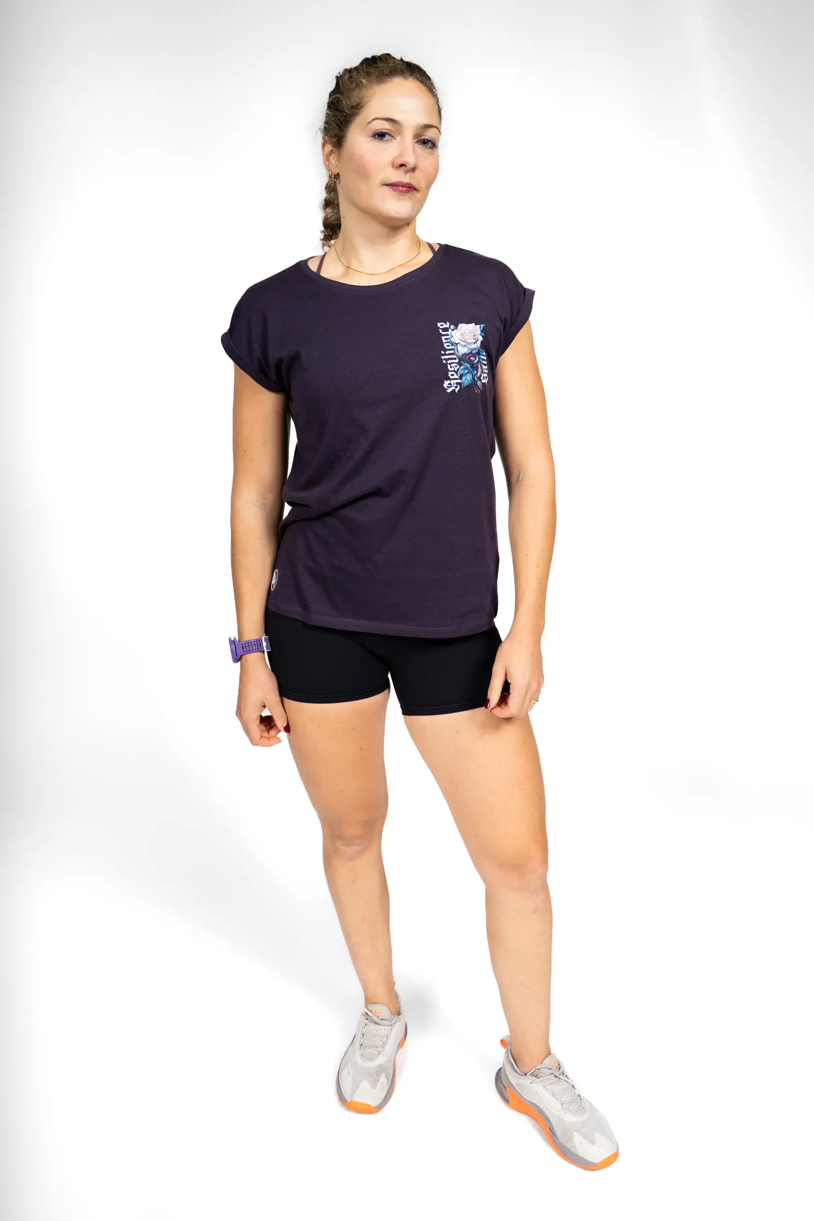 Un t-shirt féminin et structuré, dans une sublime teinte violet plume à la fois douce et puissante.