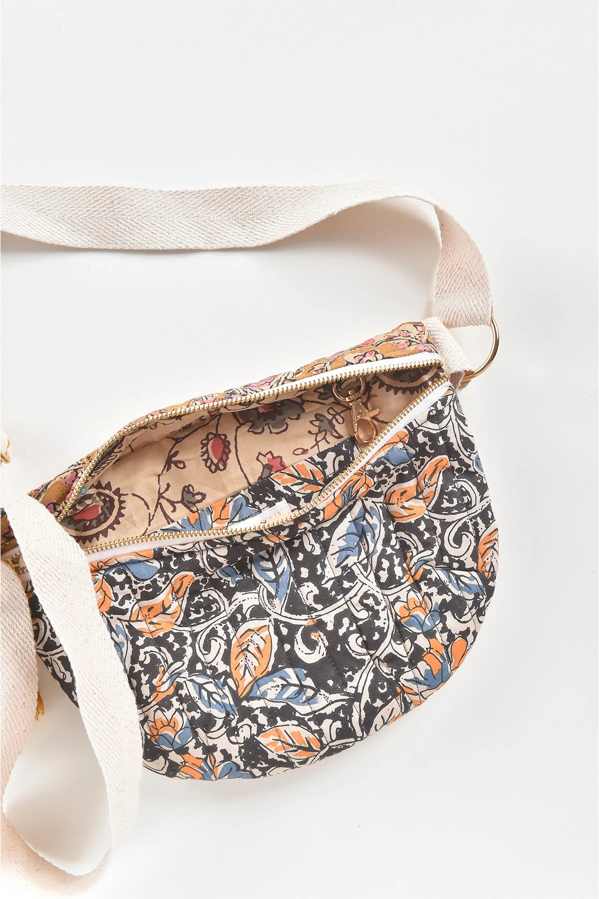 - Sangle en coton ajustable contrastée.
