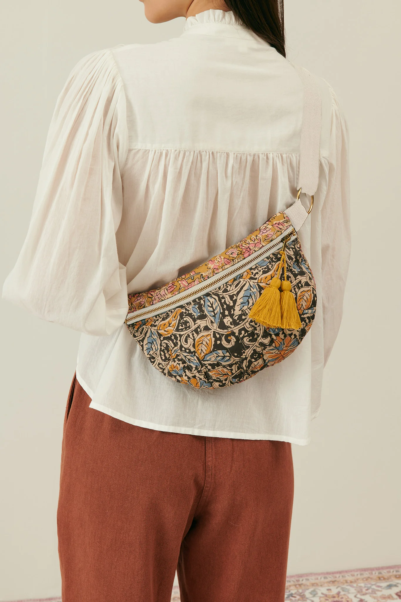 On ne la présente plus, la banane fait partie de nos iconiques ! Pour cette saison, elle se pare de nouveaux imprimés, et est toujours ornée de pompons faits main. On y glisse ses essentiels et on la porte bien contre soi : encore plus pratique qu’un sac à main !