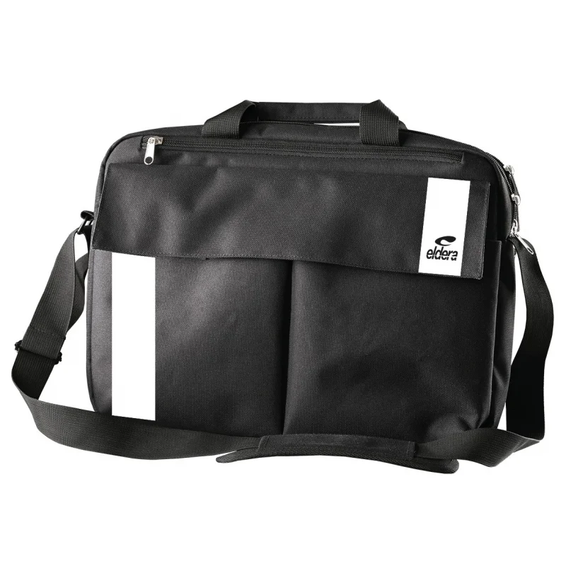 • Sacoche pour ordinateur portable et documents • Polyester résistant à l’abrasion et à l’humidité •Sangle de transport réglable • Scratch extérieur avec double poches • Poches zippées supplémentaires • Composition 100% polyester.