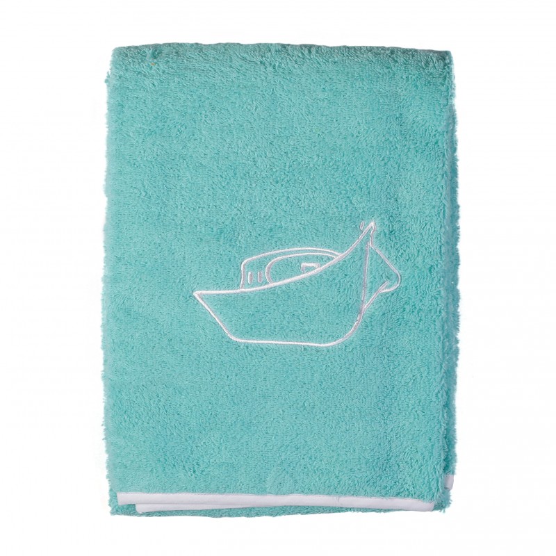 grande serviette de bain 90 % coton 10 % polyamide Broderie pinasse sur le devant