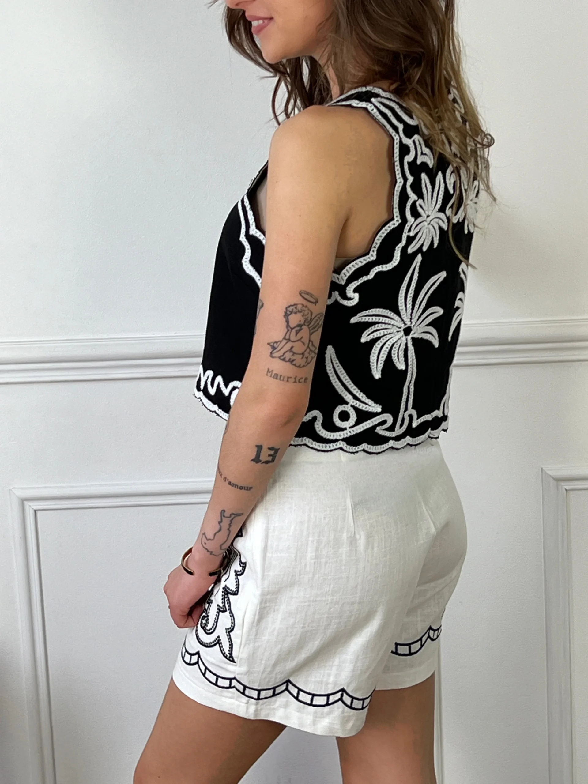 Découvrez notre short taille haute en lin écru avec motifs noirs. Ce short allie confort et élégance avec sa coupe flatteuse et son tissu léger. Les motifs noirs apportent une touche de sophistication, faisant de ce short un choix parfait pour une tenue estivale chic et décontractée. Idéal pour les journées ensoleillées, il deviendra rapidement un incontournable de votre garde-robe.