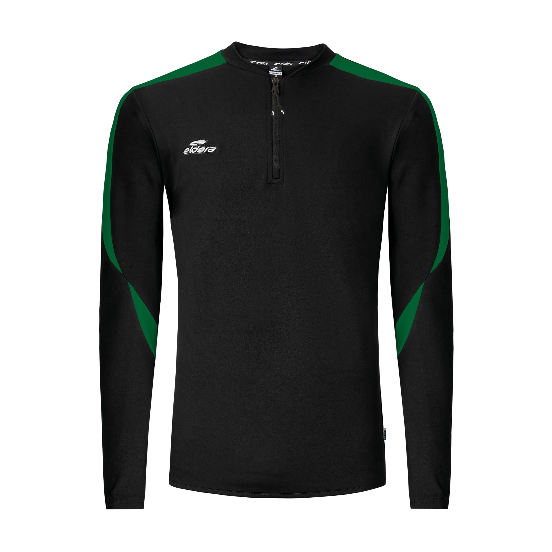 Sweat en polyester avec empiècements en colori contrasté sur les épaules et les manches. Détails logos en silicone printés sur les épaules. Col type “bomber” avec fermeture centrale zippée. Finitions de la ceinture avec biais élastiqué. Présence d’inserts sur les manches pour le passage des pouces. Logos brodés. Composition 100% polyester.