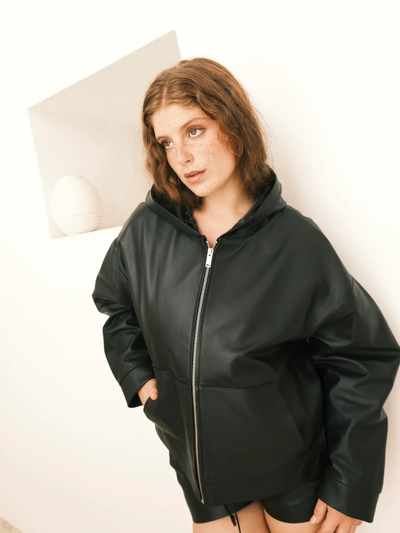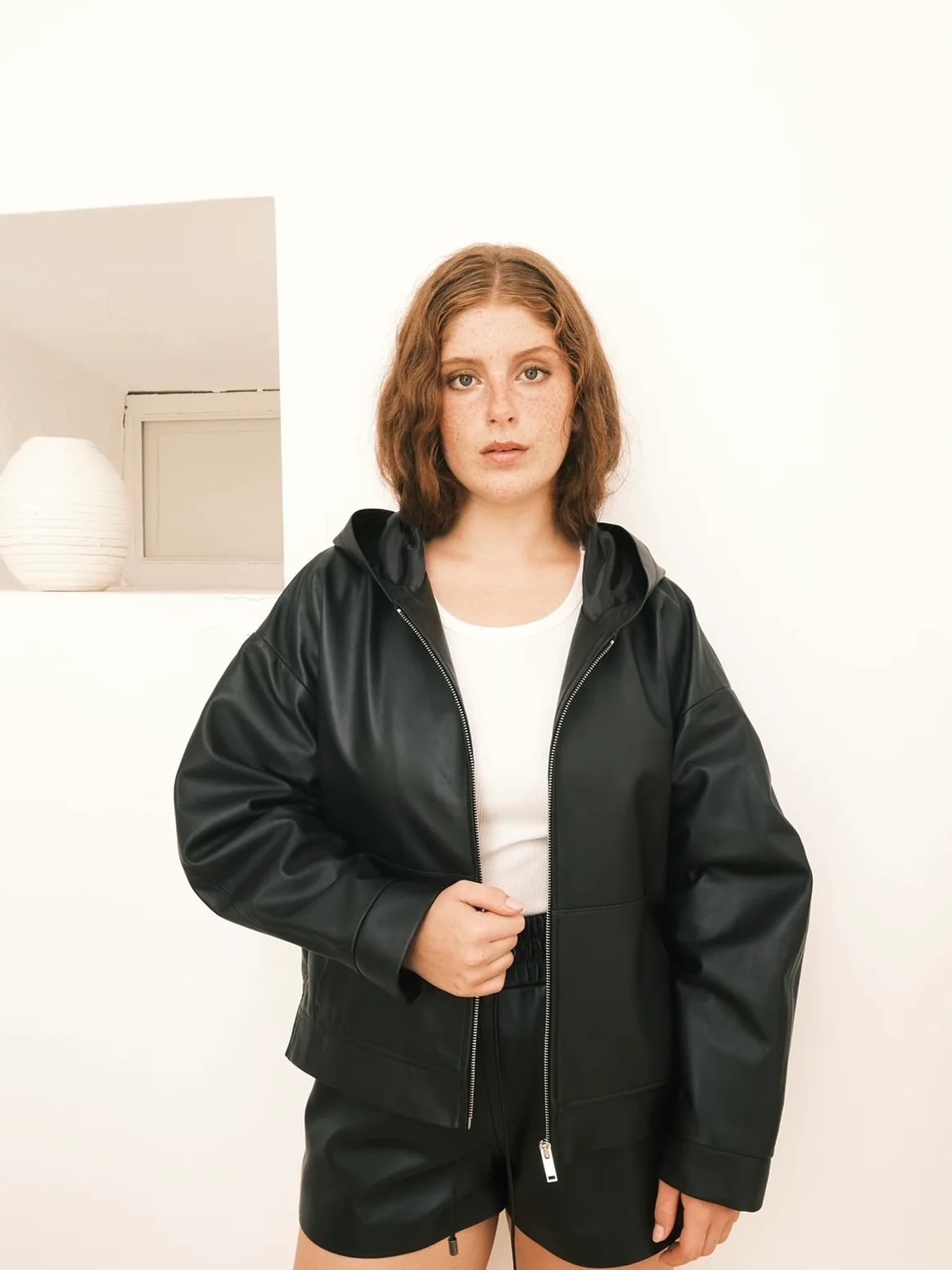 Le sweat à capuche est un intemporel à avoir dans son placard! Ici, revisité en cuir, il sera la pièce qui lookera votre tenue!