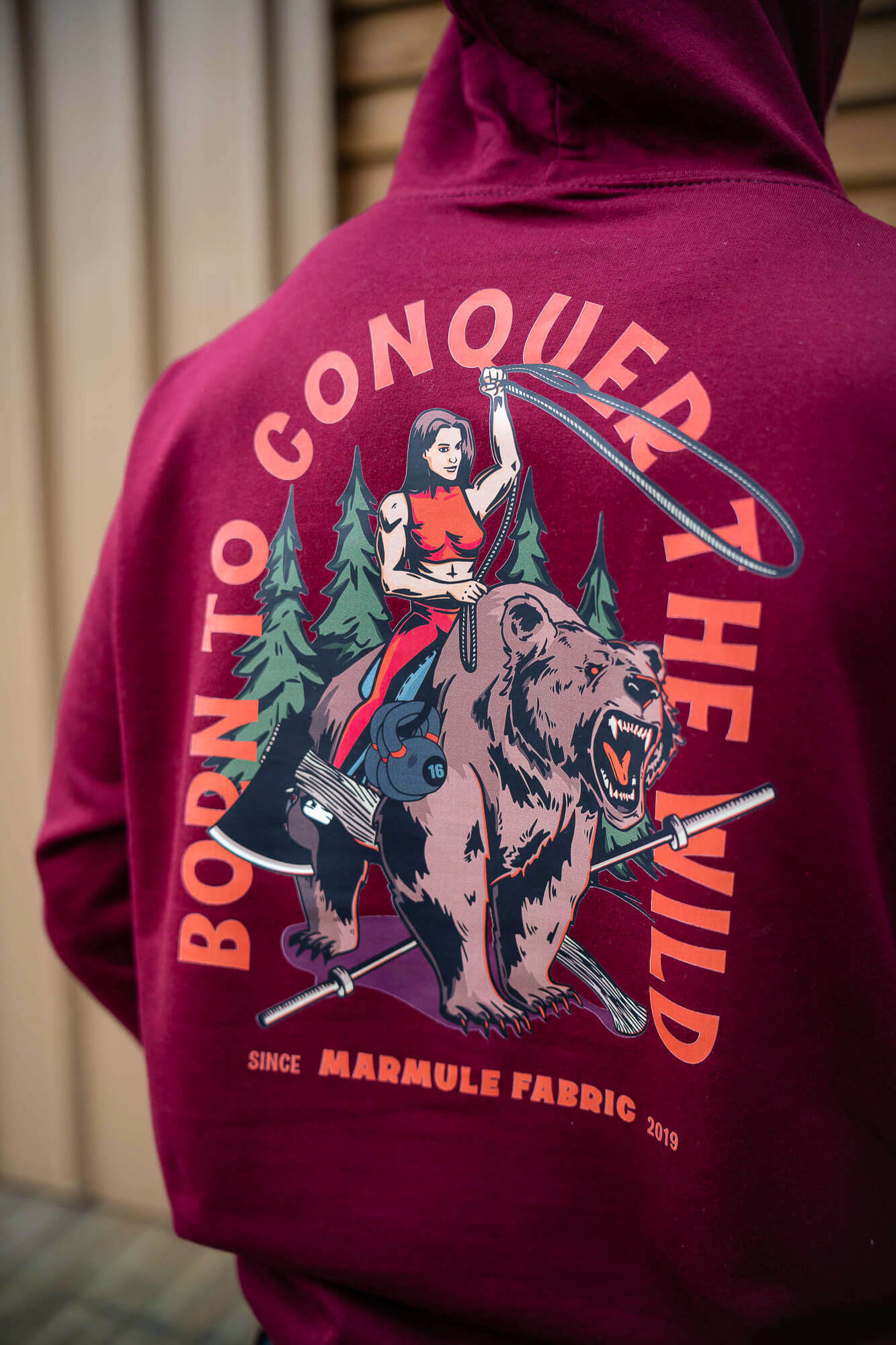- Design : “BORN TO CONQUER THE WILD” imprimé en France 🇫🇷 avec des encres OEKO-TEX respectueuses de l’Homme et de l’environnement 🌿