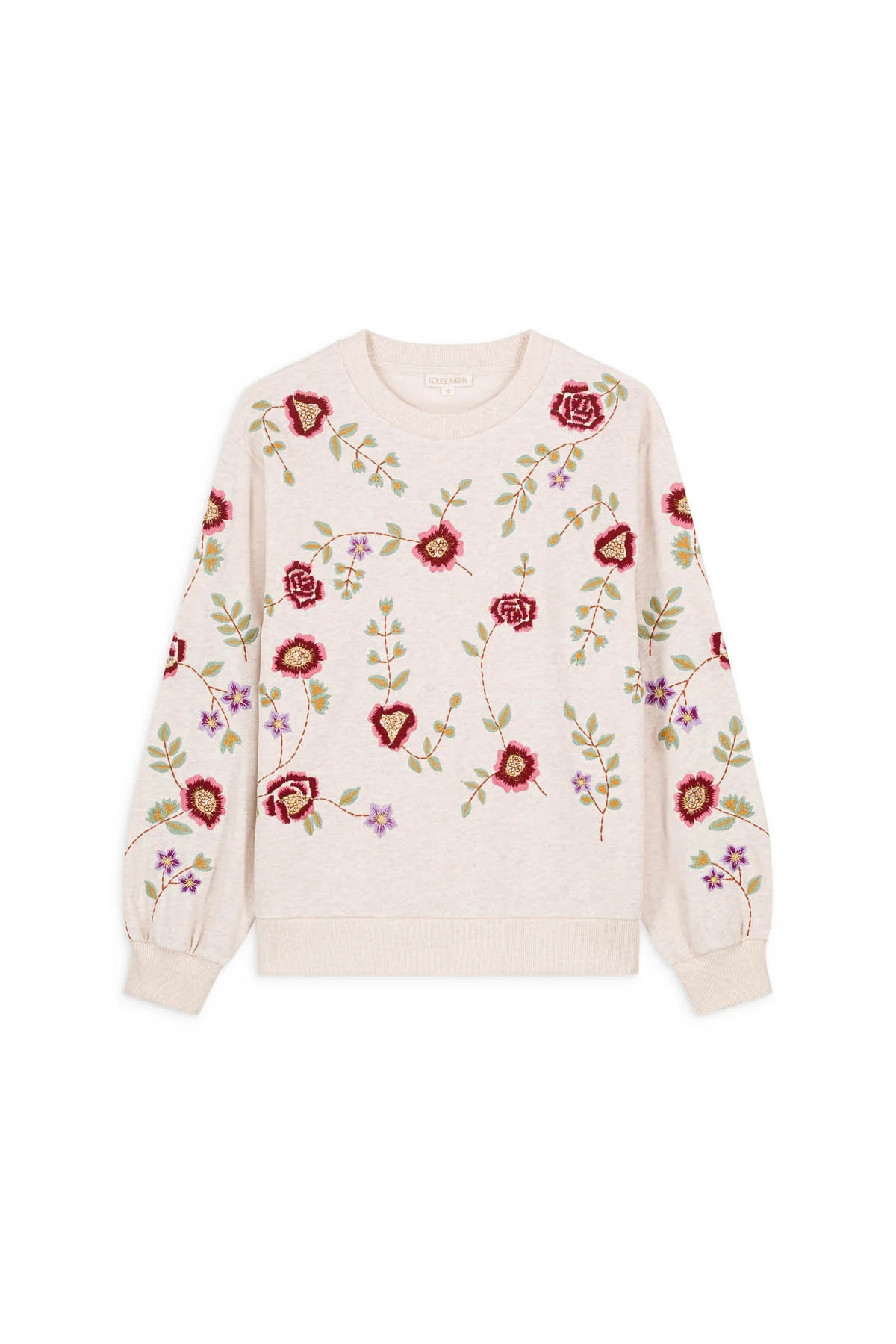 - Broderies fleuries multicolores avec détails de lurex sur le devant et le dos.