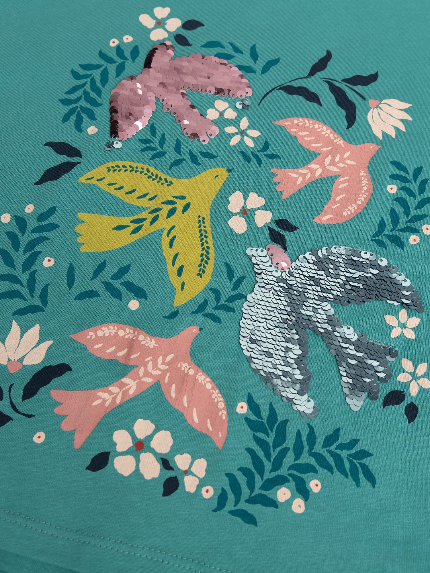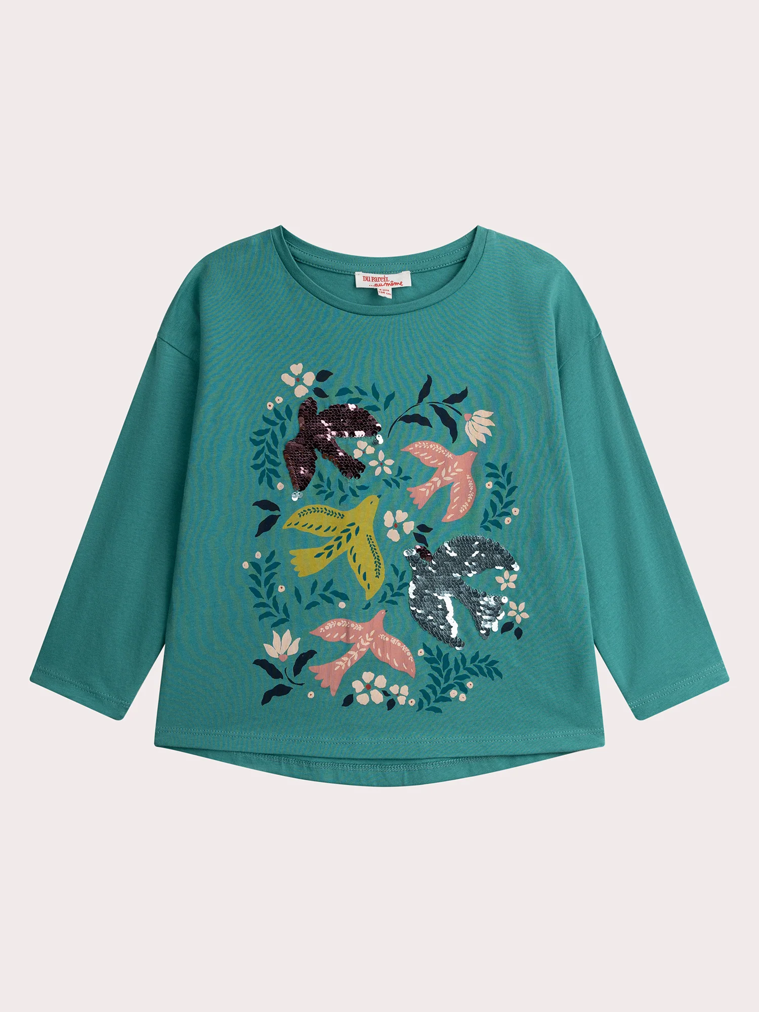 Pour les petites rêveuses qui aiment la magie, ce t-shirt à l’animation hirondelle avec des sequins magiques est un véritable enchantement. Fabriqué en coton doux, il assure un confort optimal à votre fille. Les sequins réversibles bleus et roses ajoutent une touche de féérie à sa tenue, lui permettant de changer de couleur selon son humeur ou son envie. Ce t-shirt est idéal pour les journées ensoleillées où votre fille veut briller de mille feux avec style et élégance.