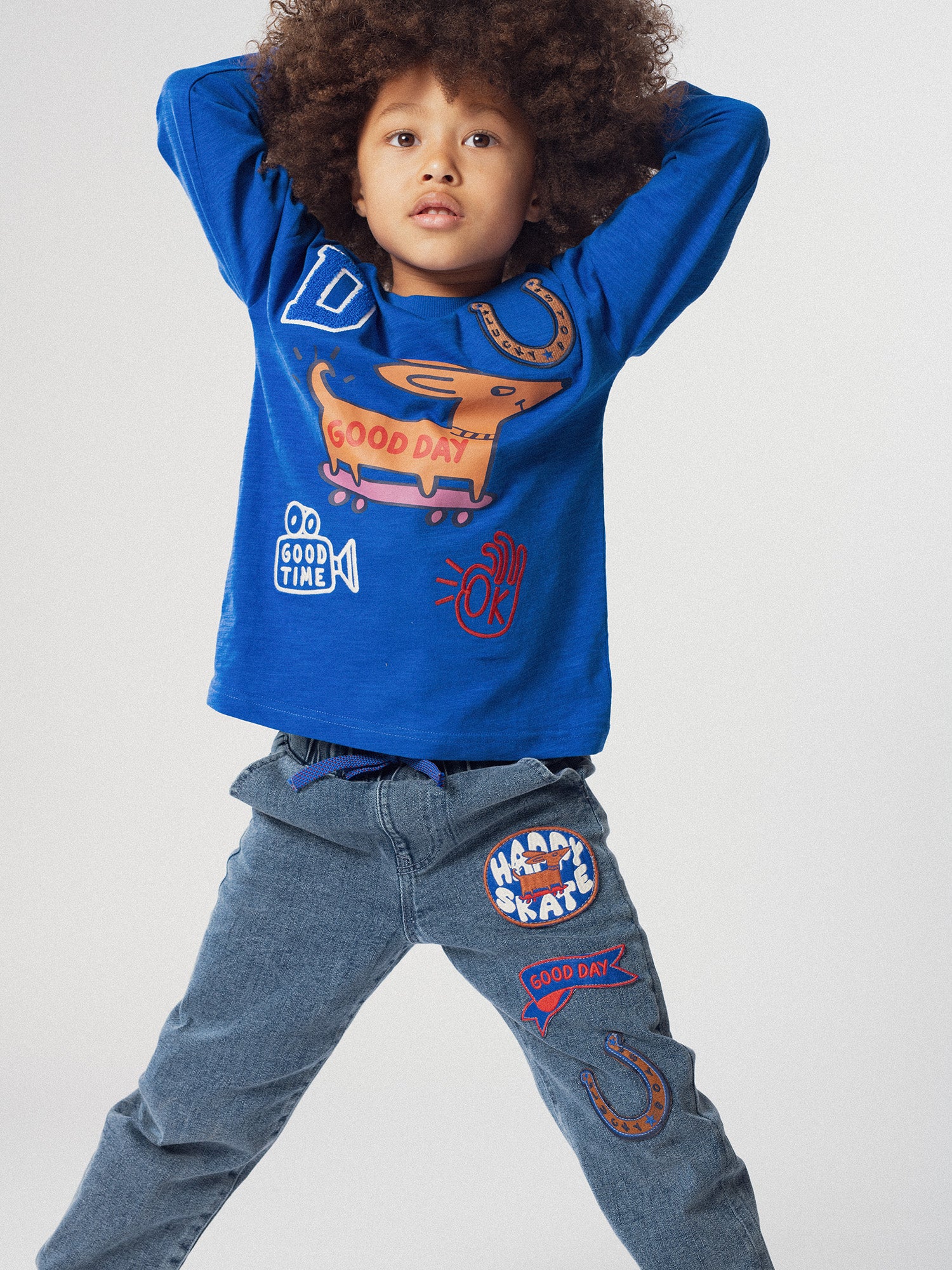 Ce t-shirt bleu foncé à manches longues est conçu pour les garçons et idéal pour la mi-saison. Confectionné en jersey flammé, il offre un toucher agréable et une allure décontractée. Une animation chien en multi-textures sur le devant apporte relief et originalité.