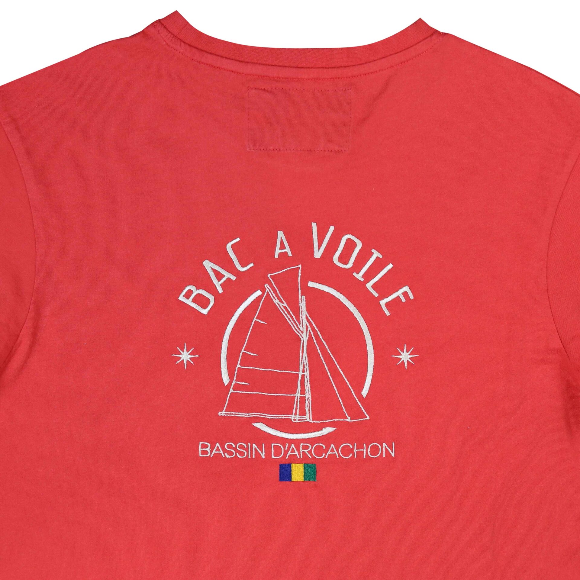 Broderie écru au dos – Bac à voile Bassin d’Arcachon.