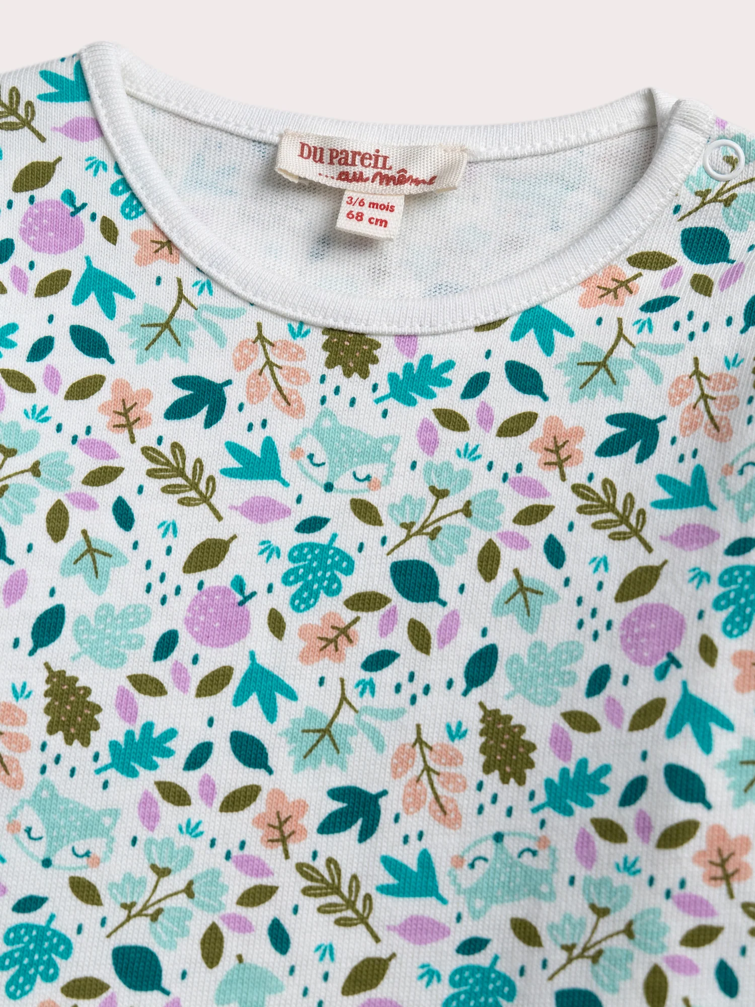 Ce tee-shirt à motif feuilles est conçu pour les bébés filles, idéal pour les saisons fraîches. Sa matière en jersey épais assure douceur et chaleur. L’ouverture à pression à l’épaule facilite l’habillage tout en ajoutant une touche pratique à ce vêtement.