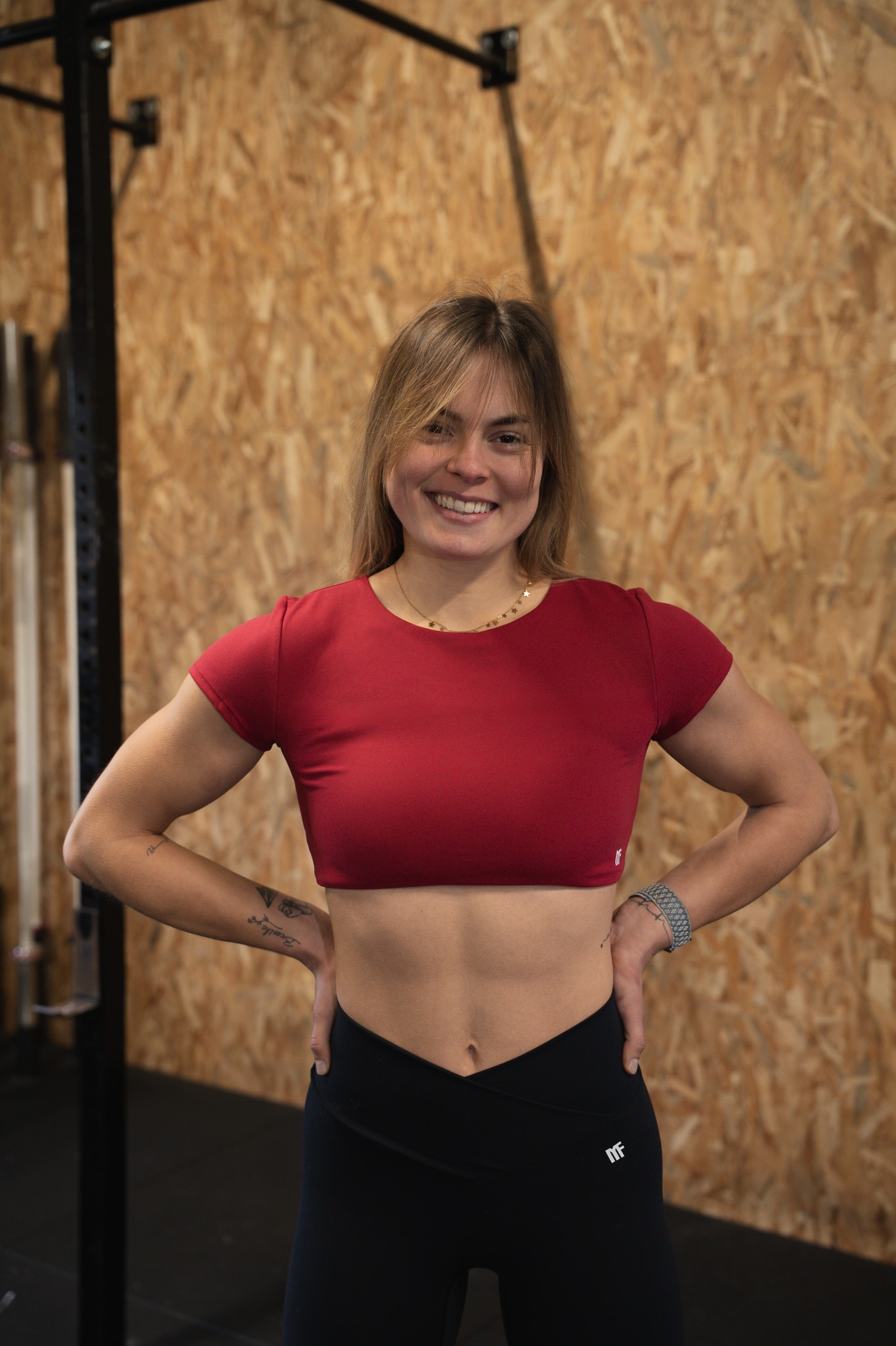 - Coupe : Top brassière 2 en 1 manches courtes