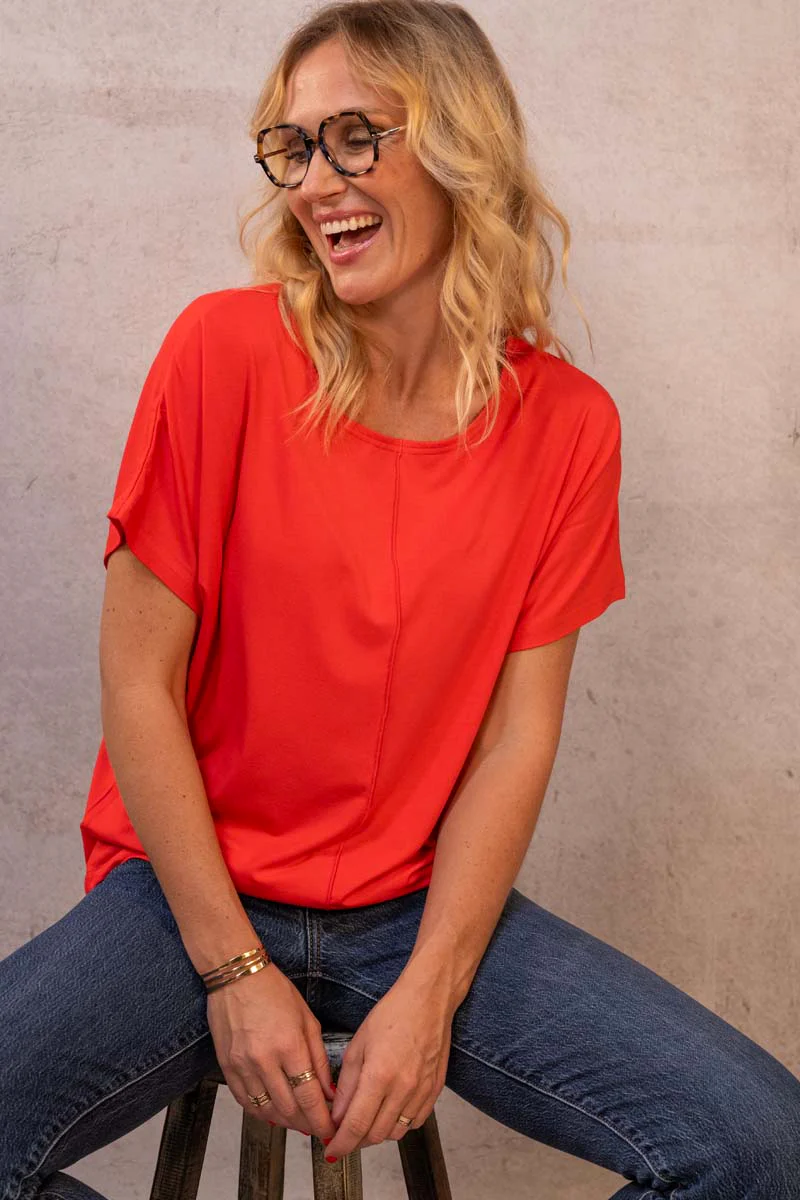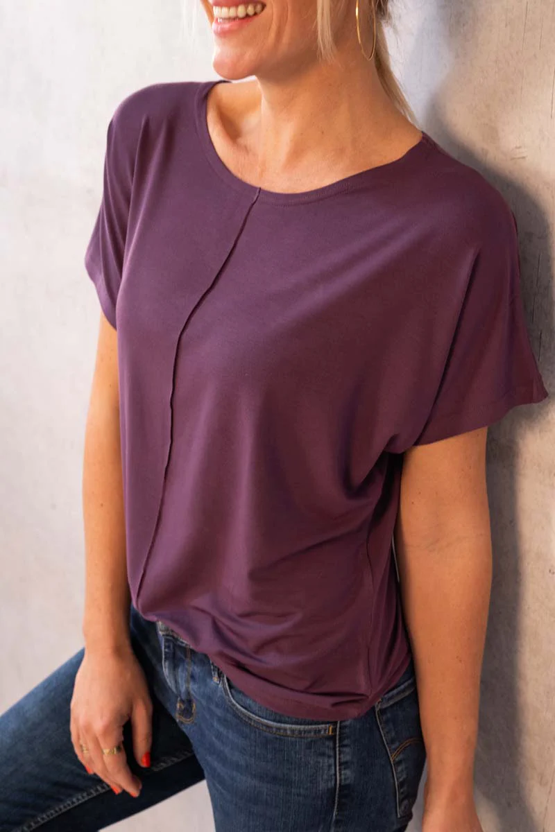 Top chauve-souris ultra confort grâce à sa composition à base de 90% pulpe de bois de hêtre (micromodal – fils Lenzing) – Confection 100% made in France – Matières certifiées Oeko-Tex.