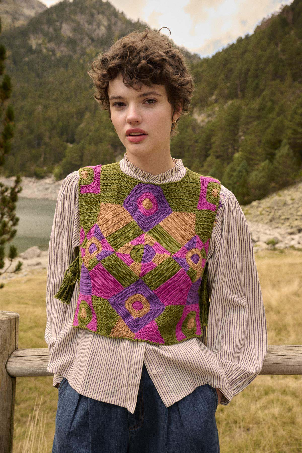- Plastron entièrement crocheté à la main, fruit de 40 heures de travail minutieux.