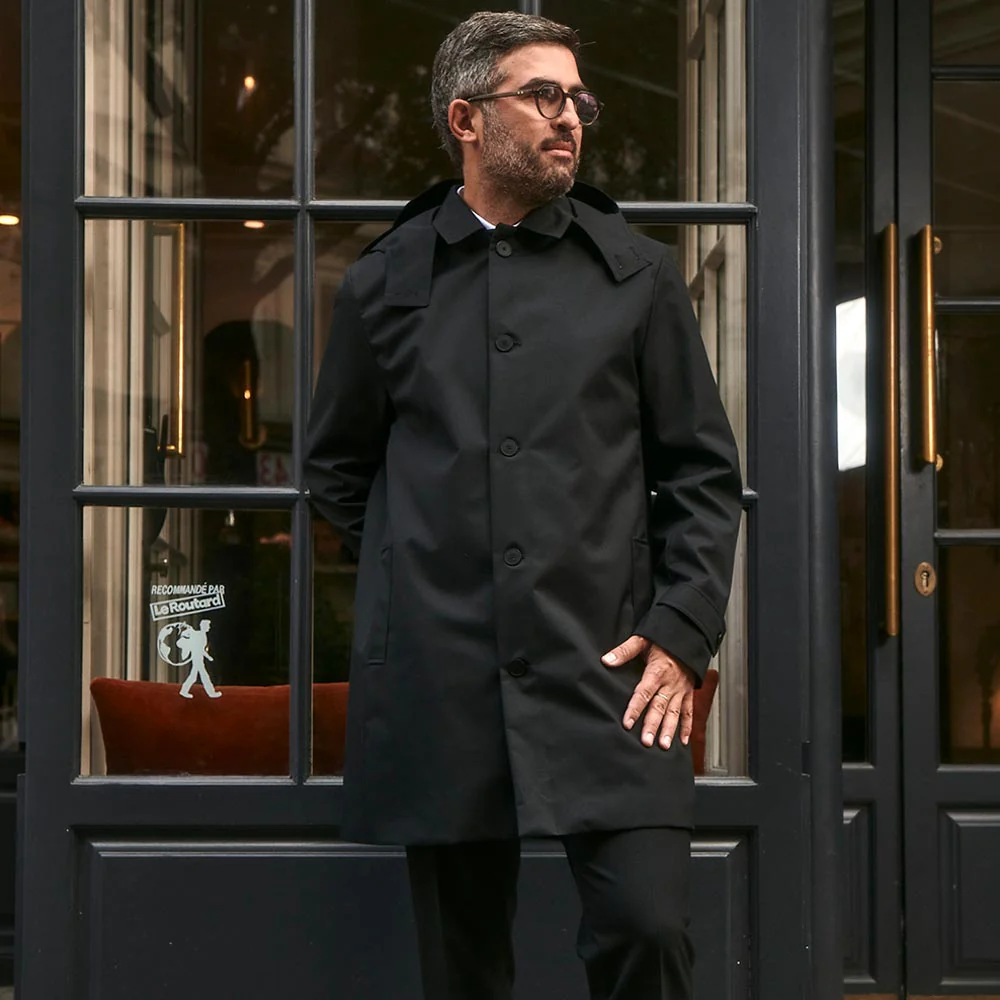 Un trench-coat à la coupe regular moderne conçu pour s’adapter à toutes les carrures. Ce manteau coupe-vent est fabriqué dans un tissu origine France, 100% polyester 3 couches charmeuses aux propriétés respirantes. L’imperméable TUILERIE est déperlant et intègre une capuche avec visière rabattable en cas d’intempéries. Ce trench homme est entièrement doublé avec plis d’aisance et se ferme par 5 boutons apparents et des pattes boutonnées sur l’extrémité des manches. Il dispose également de découpes bretelles avant, d’une découpe de dos et de 2 poches basses. Une poche intérieure et une lichette de col s’ajoutent aux finitions de ce trench aussi pratique confortable.
