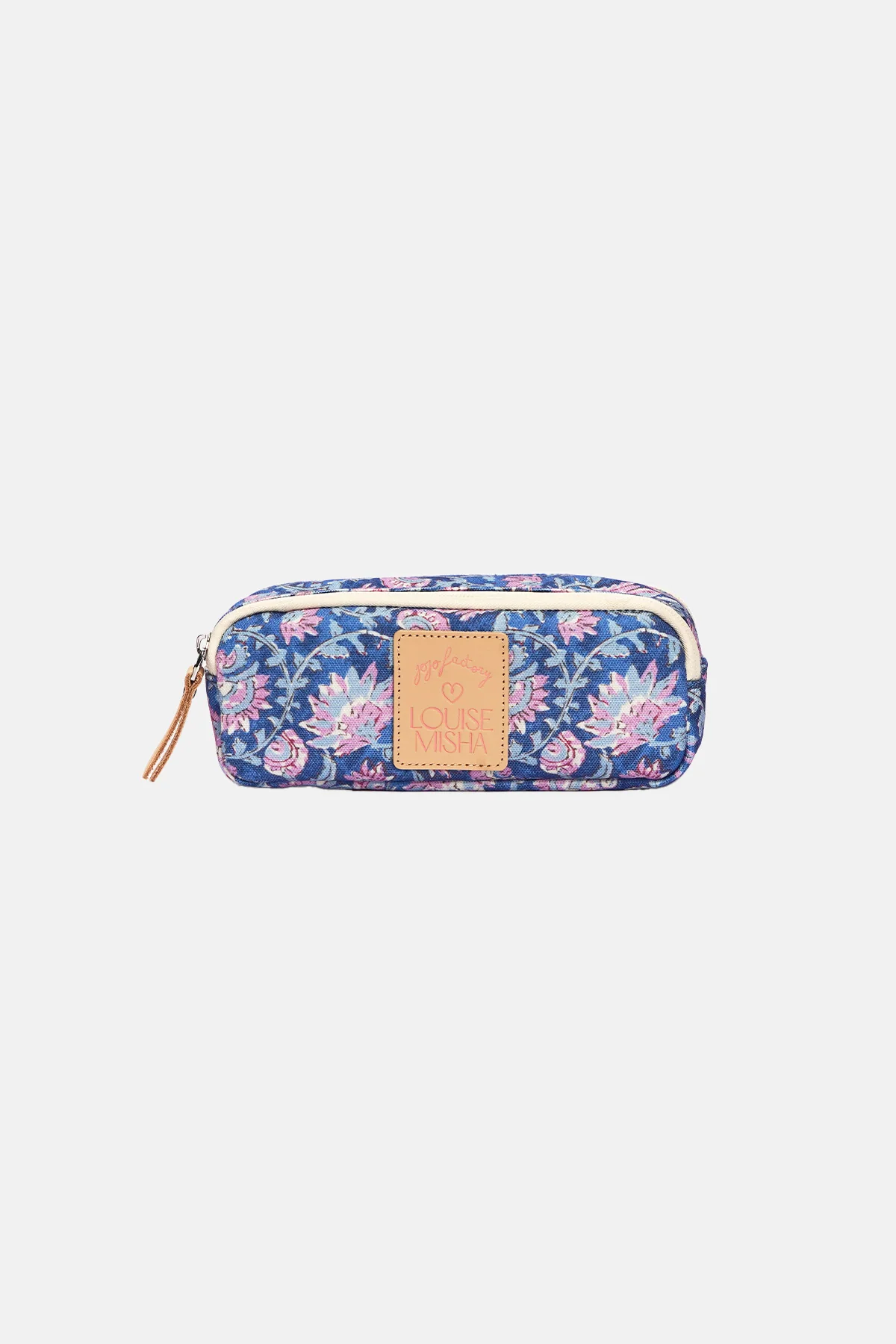 Patch en cuir naturel embossé avec le nom des deux marques.