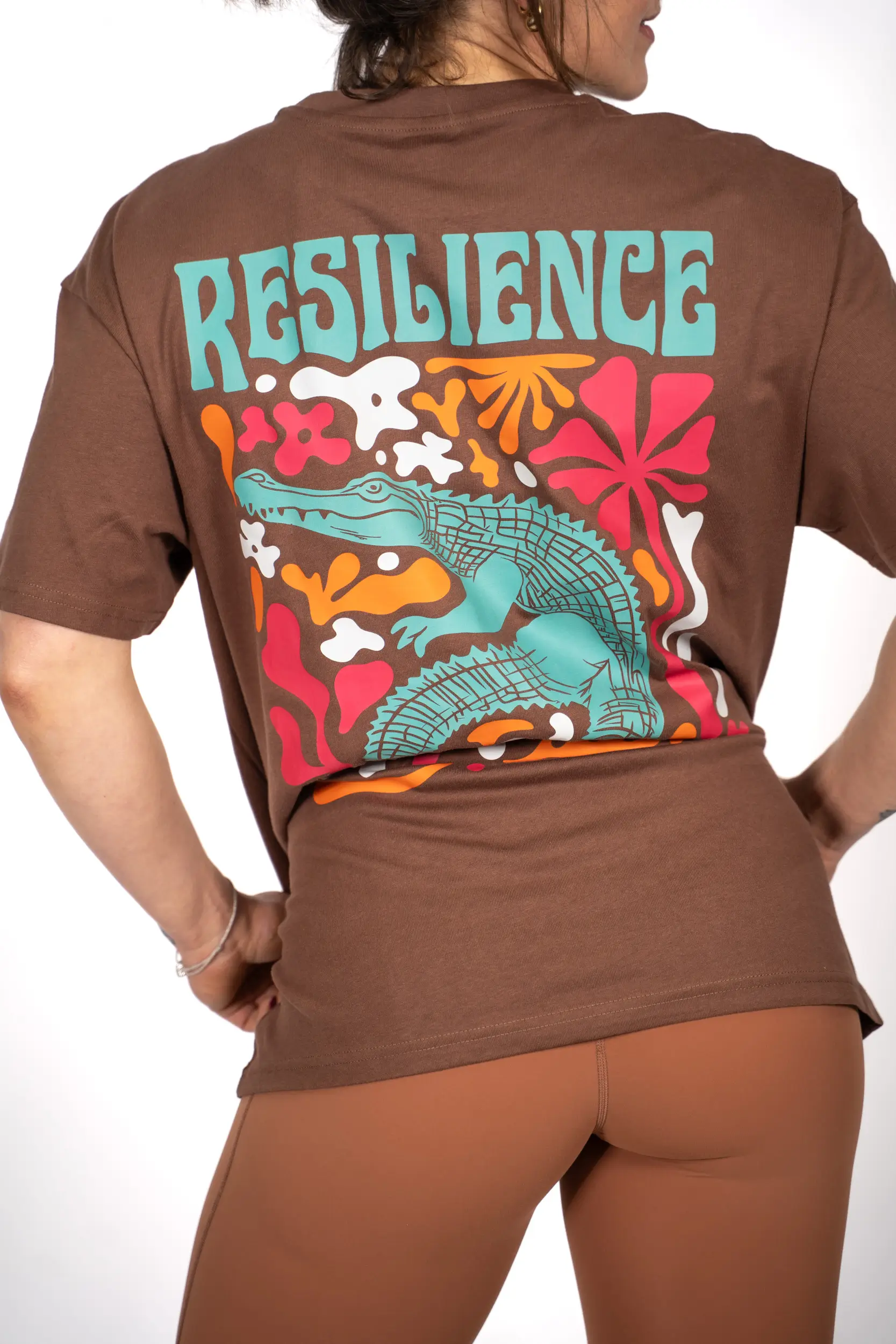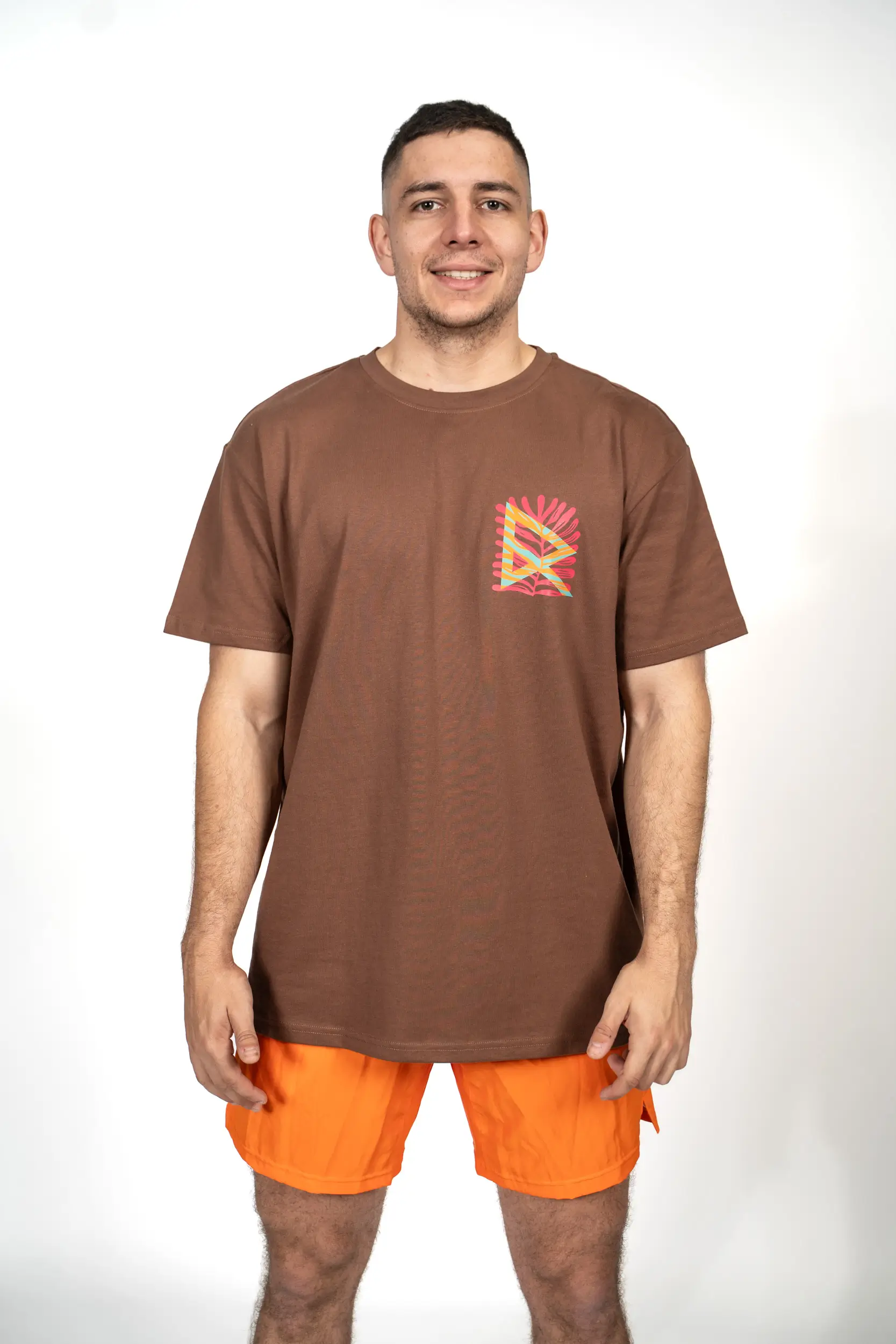 La coupe oversize permet une vraie aisance dans les mouvements, sans jamais perdre en tenue. Agréable à porter à la salle comme en extérieur. Le coloris bark vient équilibrer l’explosion visuelle du dos pour un rendu à la fois fort et cohérent.