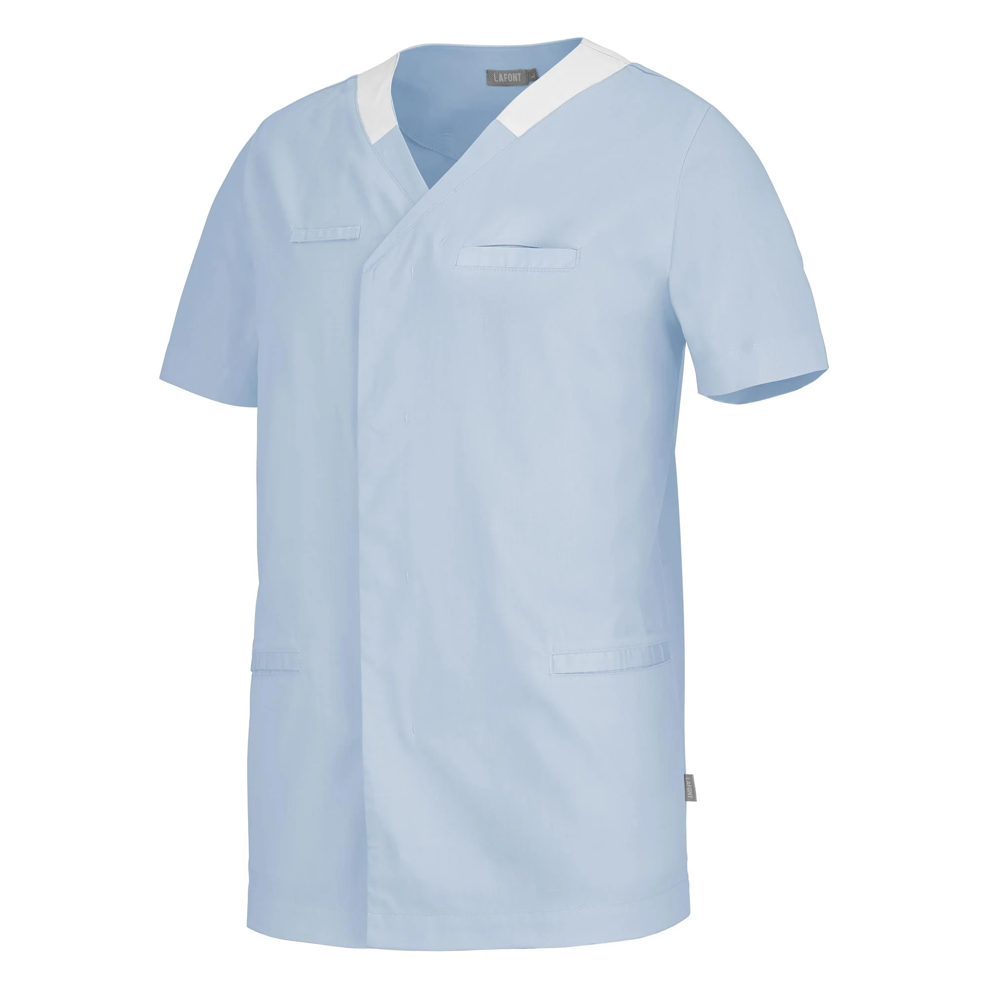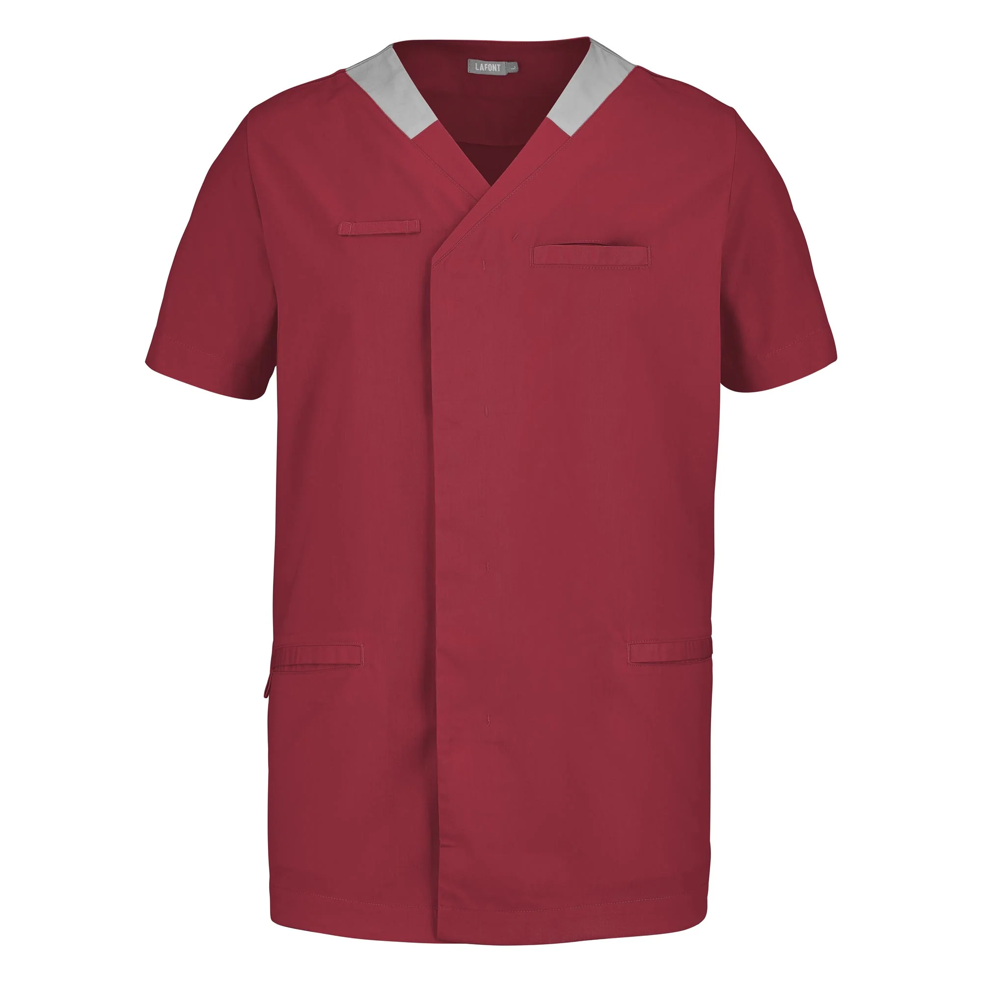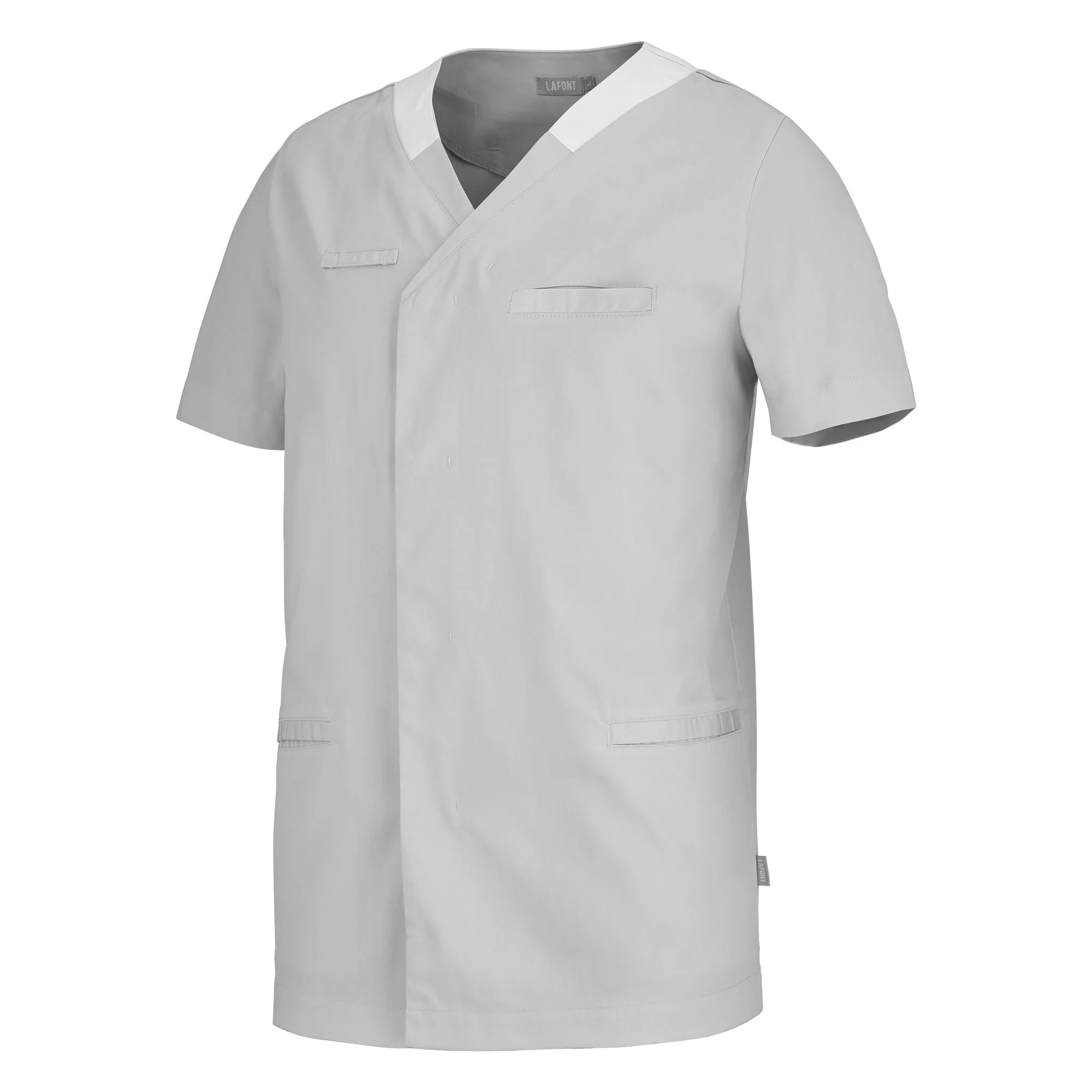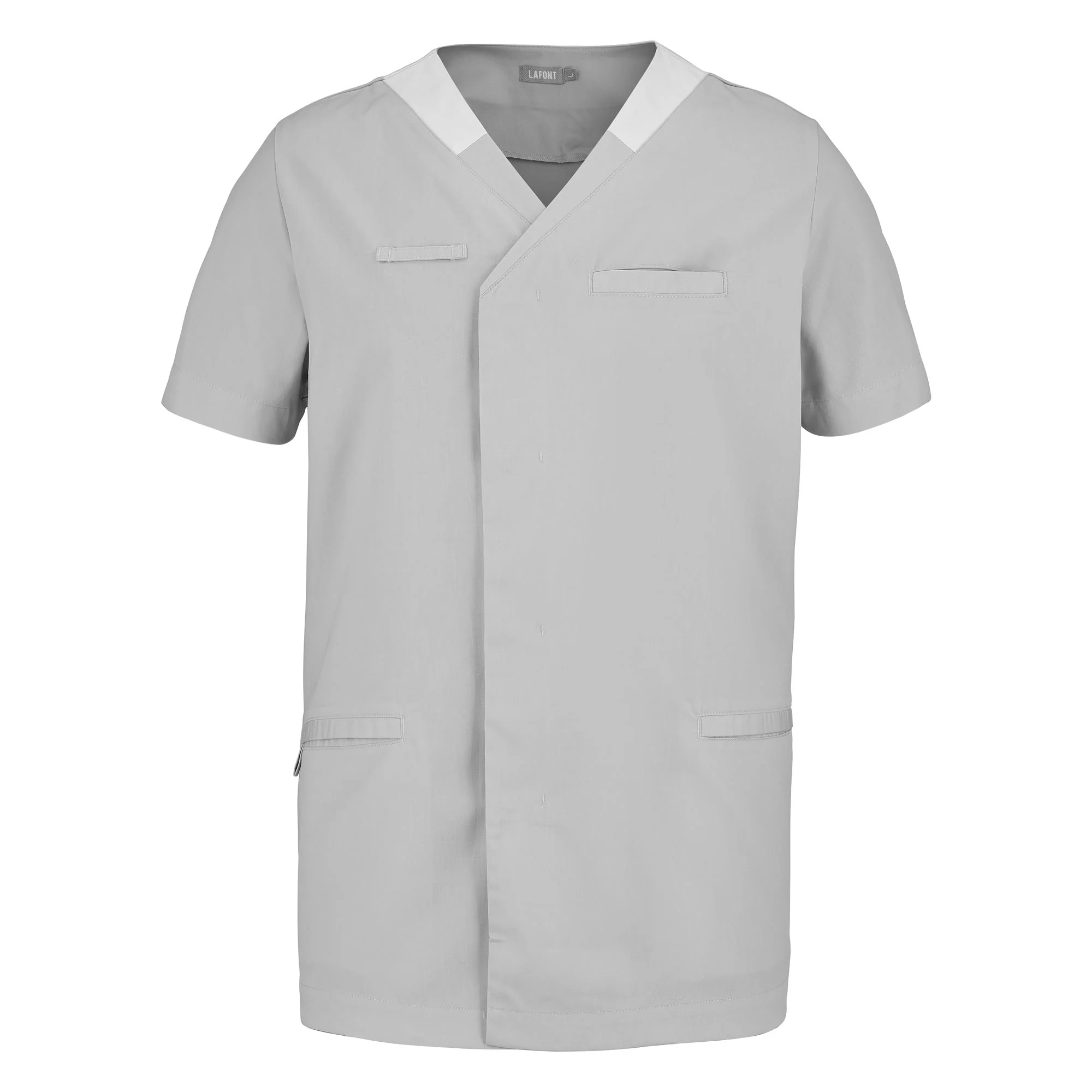 Idéal pour les collectivités, cette tunique homme manches courtes est multipoche, et répond aux normes du lavage industriel. L’avantage principal de ce modèle est que le stretch mécanique, que confère la matière polyester coton sélectionnée, reste tout au long de la vie du vêtement sans altération due au lavage. Un confort indéniable au porter de par sa matière, mais aussi de par sa coupe. Une encolure en V réhaussée d’une opposition de coloris se prolonge par une ouverture devant légèrement déportée, fermée par des pressions cachées. Porte-badge, porte-bip, et collerette intérieure de marquage viennent compléter les avantages de la tunique AIR.