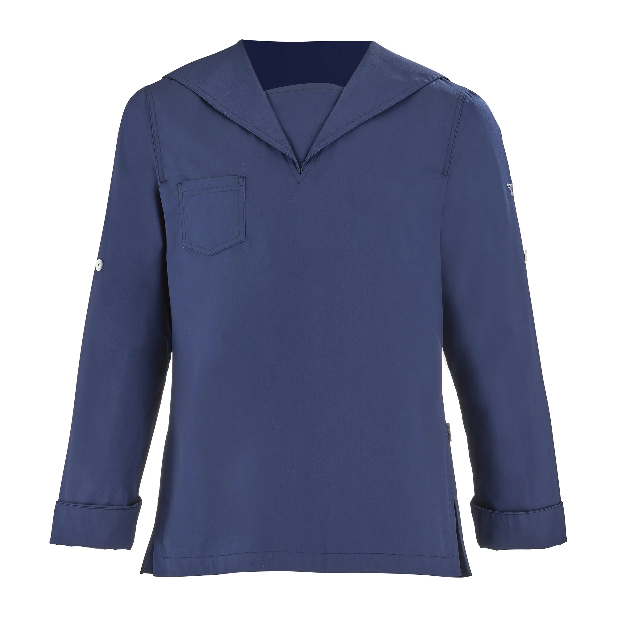 Vêtement de travail spécialement conçu pour les professionnels de la marée comme les poissonniers ou écaillers. Très fonctionnelle, elle est dotée de manches longues transformables en manches courtes grâce à une patte de boutonnage sur le biceps, et de larges revers avec fente pour pouvoir retourner les manches facilement. La vareuse de poissonnier PECCATOR est composée d’un textile confortable et résistant, 50% coton 50% polyester avec traitement défroissabilité. Pour un confort optimal, cette tenue de poissonnerie intègre également un col matelot formant un bas volet d’aération au dos et 4 œillets brodés, 2 aux côtés et 2 sous les bras. Une enforme intérieure, ainsi qu’une poche poitrine et une broderie LAFONT complètent les finitions de la vareuse professionnelle PECCATOR.
