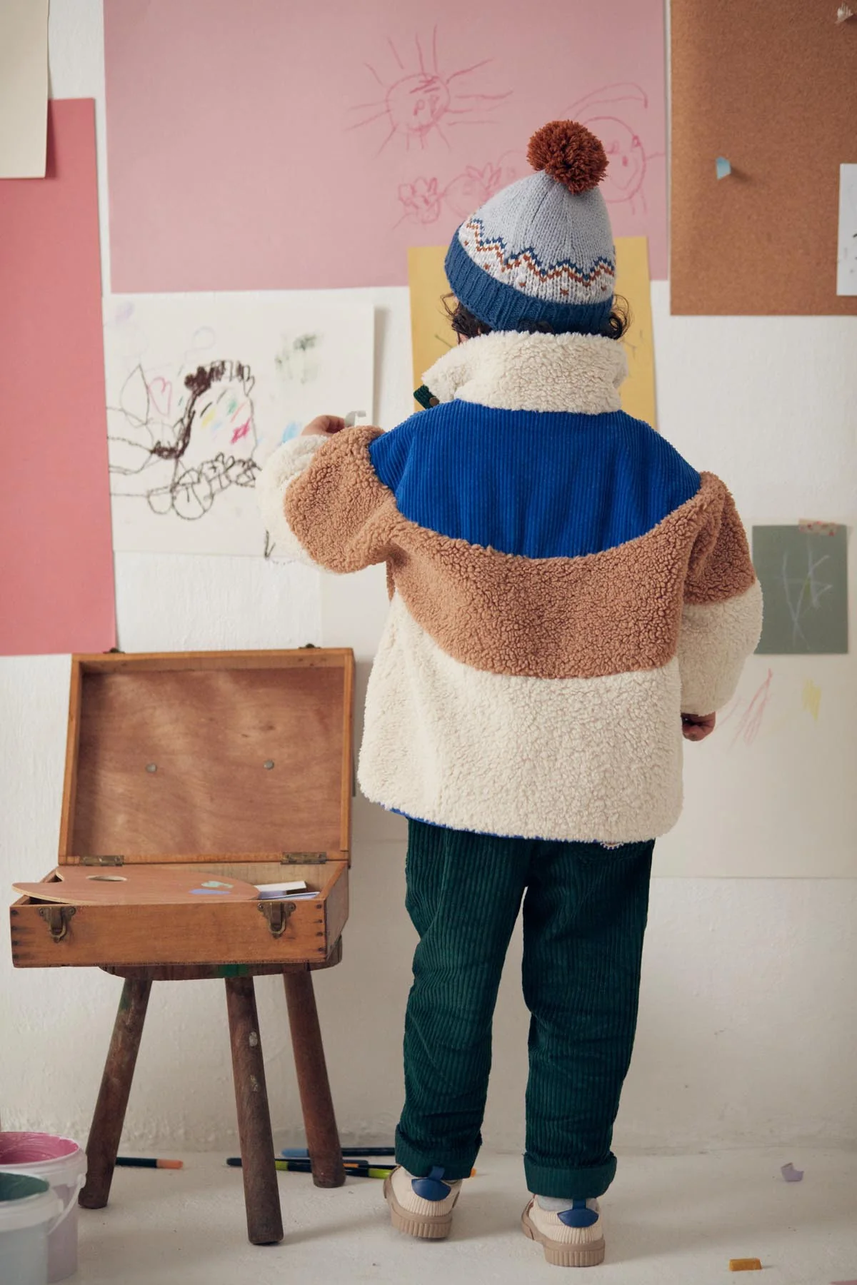 Coup de coeur pour cette veste de mi-saison et son mix velours & sherpa qui offre beaucoup de style. Ses couleurs intemporelles et son esprit color block en font une pièce à la fois singulière et essentielle.