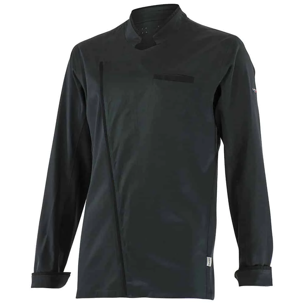 Une veste professionnelle mariant la technique et la haute qualité. La veste de cuisine homme Cynara a été conçue avec le premier tissu retardateur de flamme composé de 68 % modacrylique 29 % modal 3 % eol. Ce textile mis au point avec TDV Industries garantit une sécurité maximale même au moment du coup de feu en cuisine, il est aussi antibactérien et antitache. La veste de cuisine manche longue Cynara dispose également d’un patronage exclusif Ergo Cut® sans coutures procurant un confort optimal. Elle s’agrémente d’une fermeture asymétrique par grippers, d’un col officier et d’empiècements en maille respirante sous les bras et dans le dos pour encore plus d’aisance dans les mouvements. Cette veste travail se décline en noir et blanc, et au féminin avec le modèle Solanum.