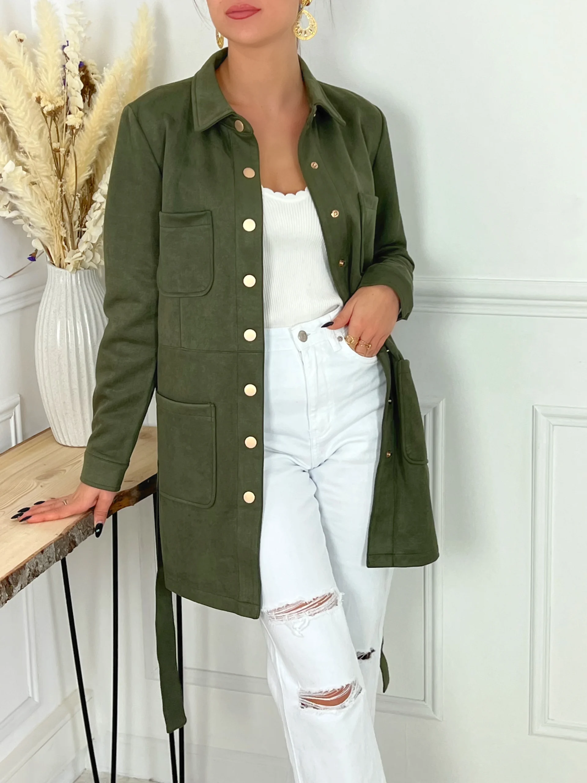 VESTE KAKI AVEC CEINTURE AMOVIBLE FEMME